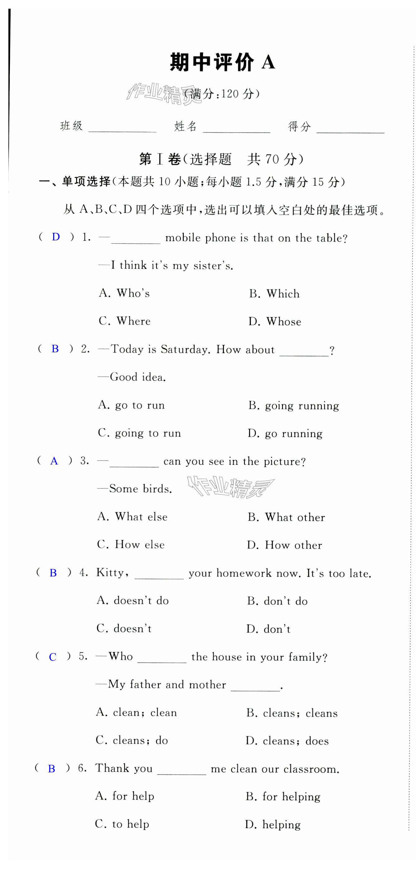 注:目前有些书本章节名称可能整理的还不是很完善,但都是按照顺序排列的,请同学们按照顺序仔细查找。练习册 2024年自我提升与评价七年级英语上册译林版 答案主要是用来给同学们做完题方便对答案用的,请勿直接抄袭。