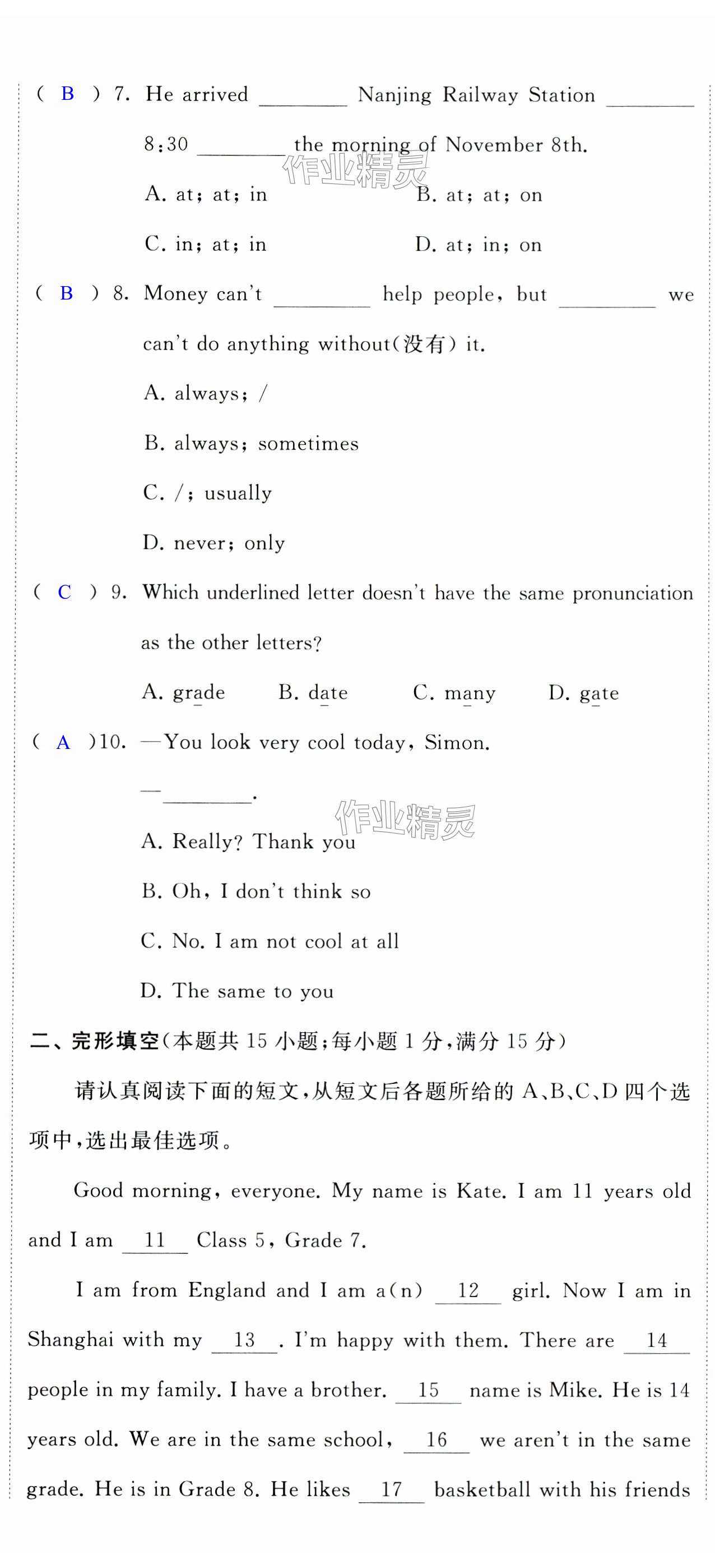 注:目前有些书本章节名称可能整理的还不是很完善,但都是按照顺序排列的,请同学们按照顺序仔细查找。练习册 2024年自我提升与评价七年级英语上册译林版 答案主要是用来给同学们做完题方便对答案用的,请勿直接抄袭。