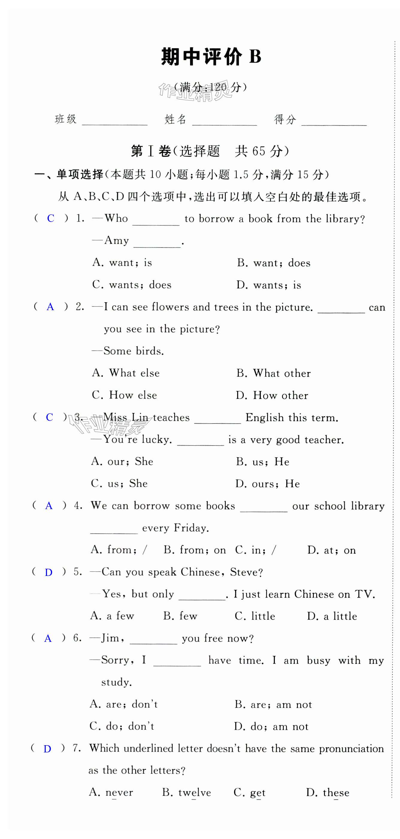 注:目前有些书本章节名称可能整理的还不是很完善,但都是按照顺序排列的,请同学们按照顺序仔细查找。练习册 2024年自我提升与评价七年级英语上册译林版 答案主要是用来给同学们做完题方便对答案用的,请勿直接抄袭。