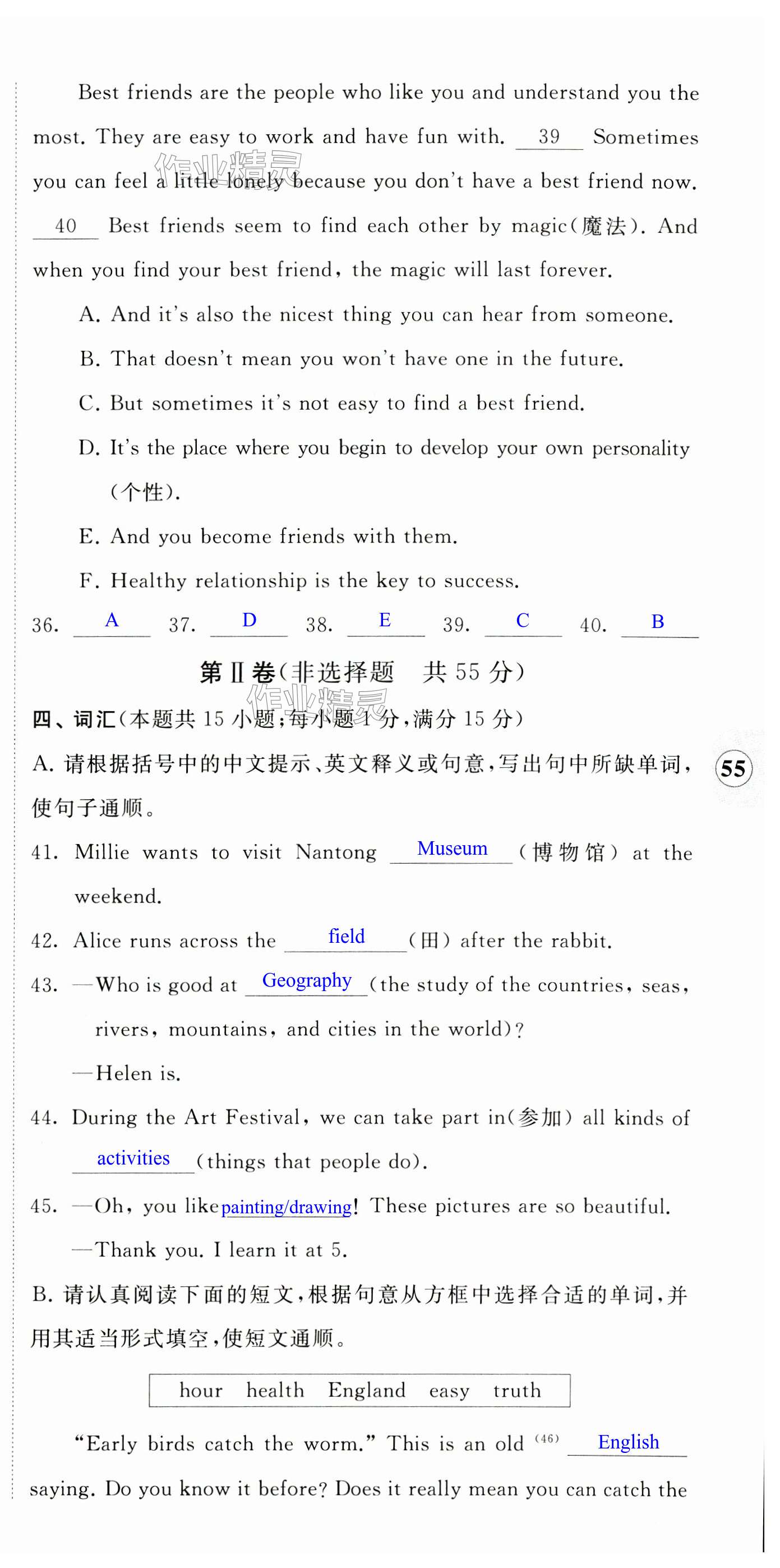 注:目前有些书本章节名称可能整理的还不是很完善,但都是按照顺序排列的,请同学们按照顺序仔细查找。练习册 2024年自我提升与评价七年级英语上册译林版 答案主要是用来给同学们做完题方便对答案用的,请勿直接抄袭。