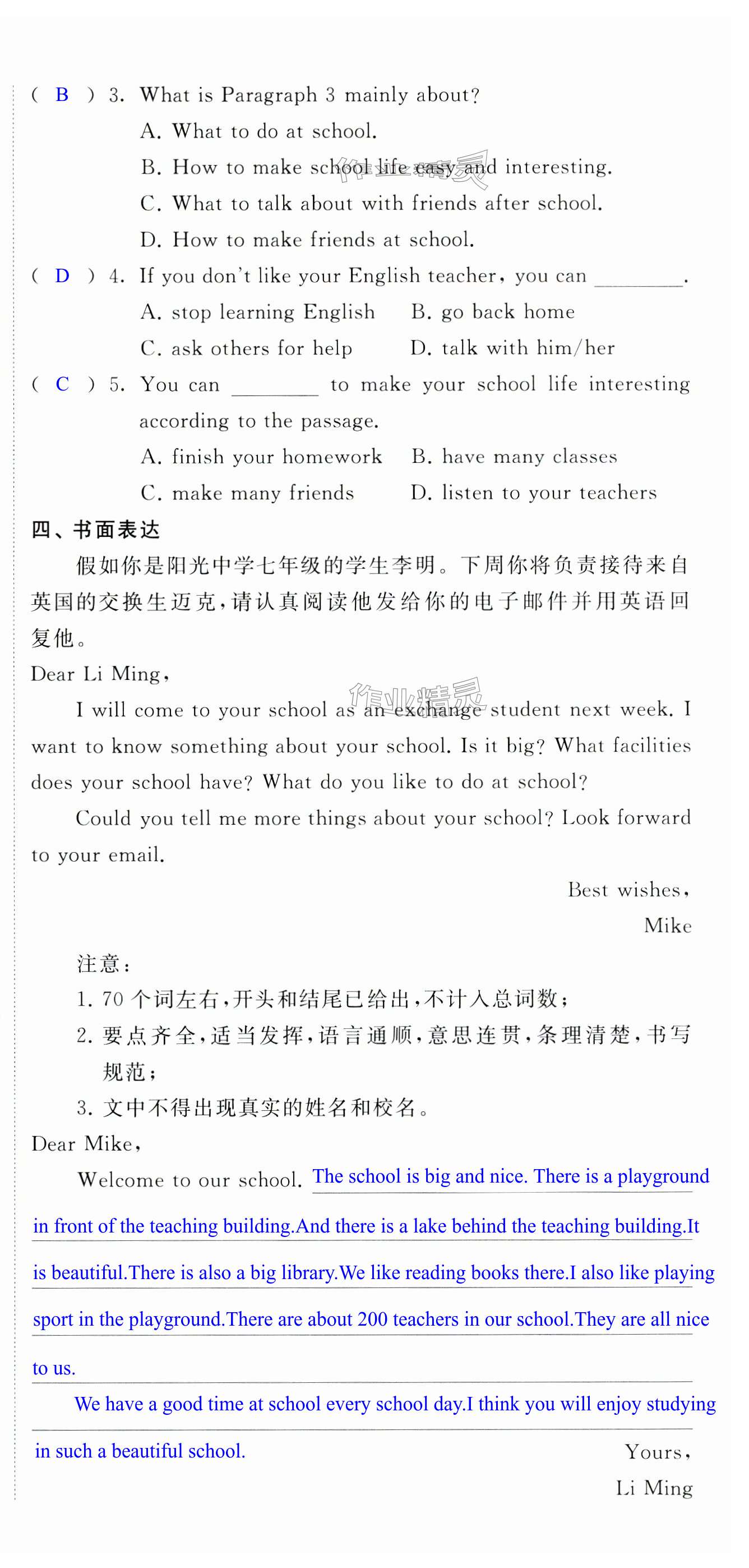 注:目前有些书本章节名称可能整理的还不是很完善,但都是按照顺序排列的,请同学们按照顺序仔细查找。练习册 2024年自我提升与评价七年级英语上册译林版 答案主要是用来给同学们做完题方便对答案用的,请勿直接抄袭。
