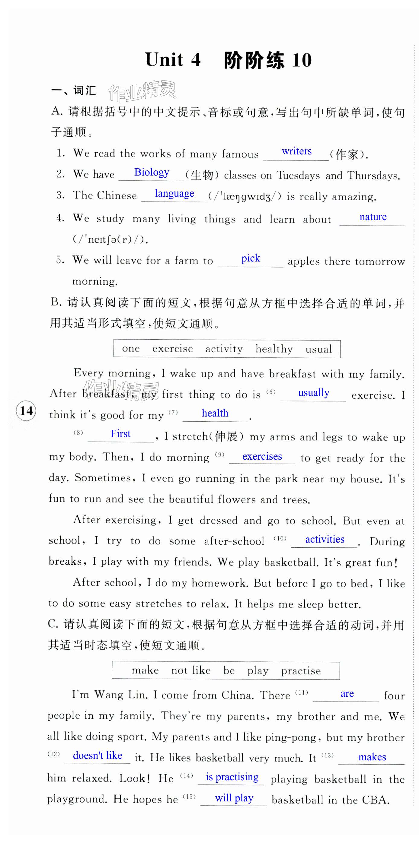 注:目前有些书本章节名称可能整理的还不是很完善,但都是按照顺序排列的,请同学们按照顺序仔细查找。练习册 2024年自我提升与评价七年级英语上册译林版 答案主要是用来给同学们做完题方便对答案用的,请勿直接抄袭。