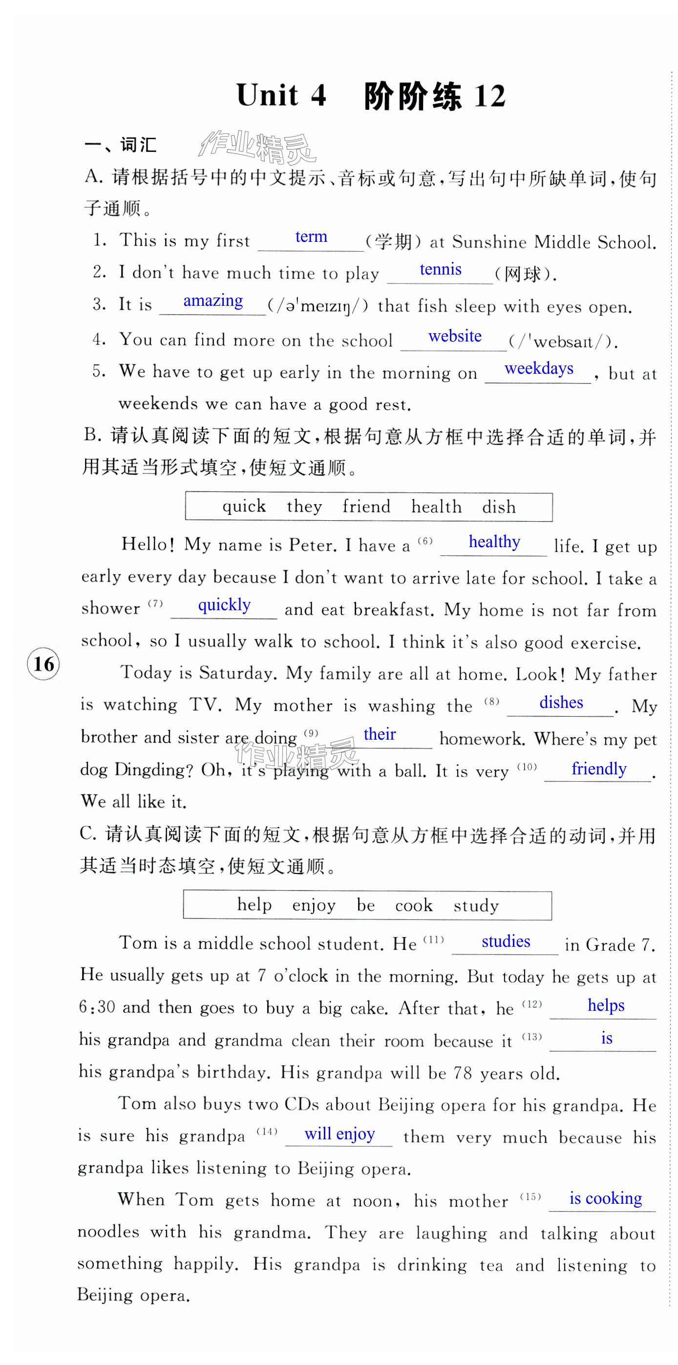 注:目前有些书本章节名称可能整理的还不是很完善,但都是按照顺序排列的,请同学们按照顺序仔细查找。练习册 2024年自我提升与评价七年级英语上册译林版 答案主要是用来给同学们做完题方便对答案用的,请勿直接抄袭。