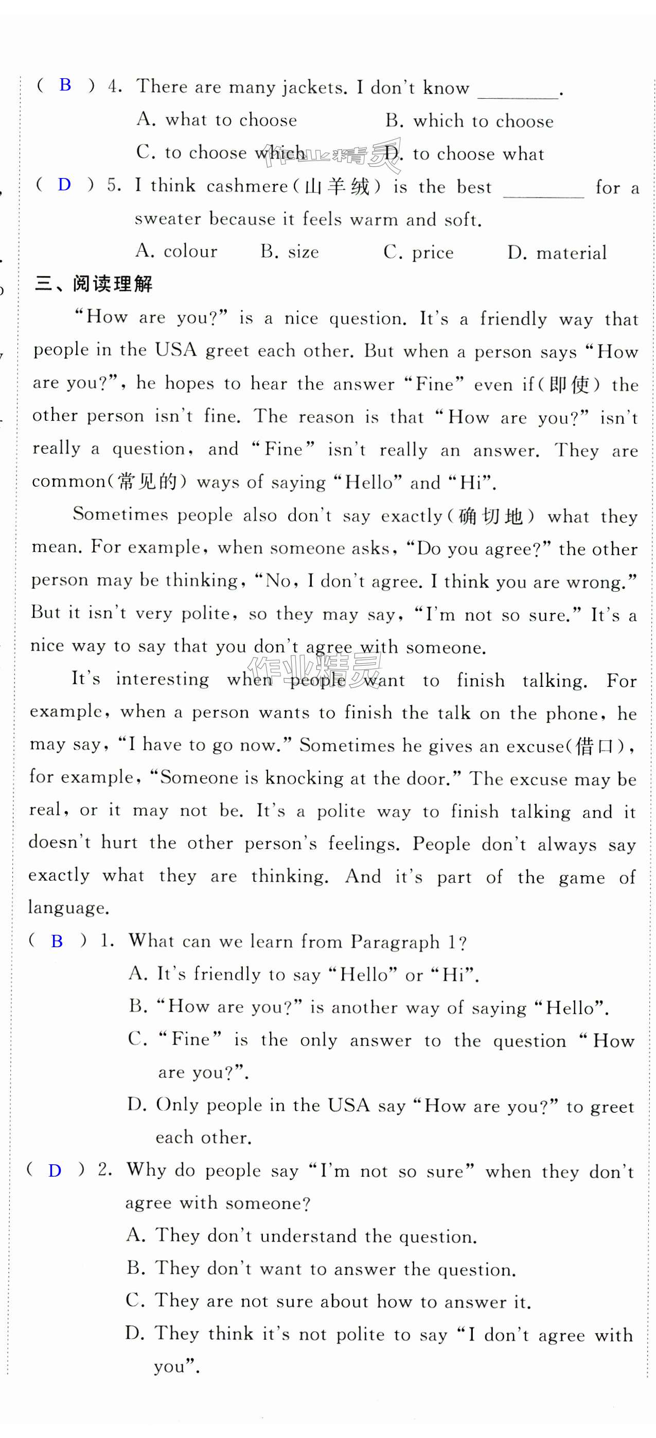 注:目前有些书本章节名称可能整理的还不是很完善,但都是按照顺序排列的,请同学们按照顺序仔细查找。练习册 2024年自我提升与评价七年级英语上册译林版 答案主要是用来给同学们做完题方便对答案用的,请勿直接抄袭。
