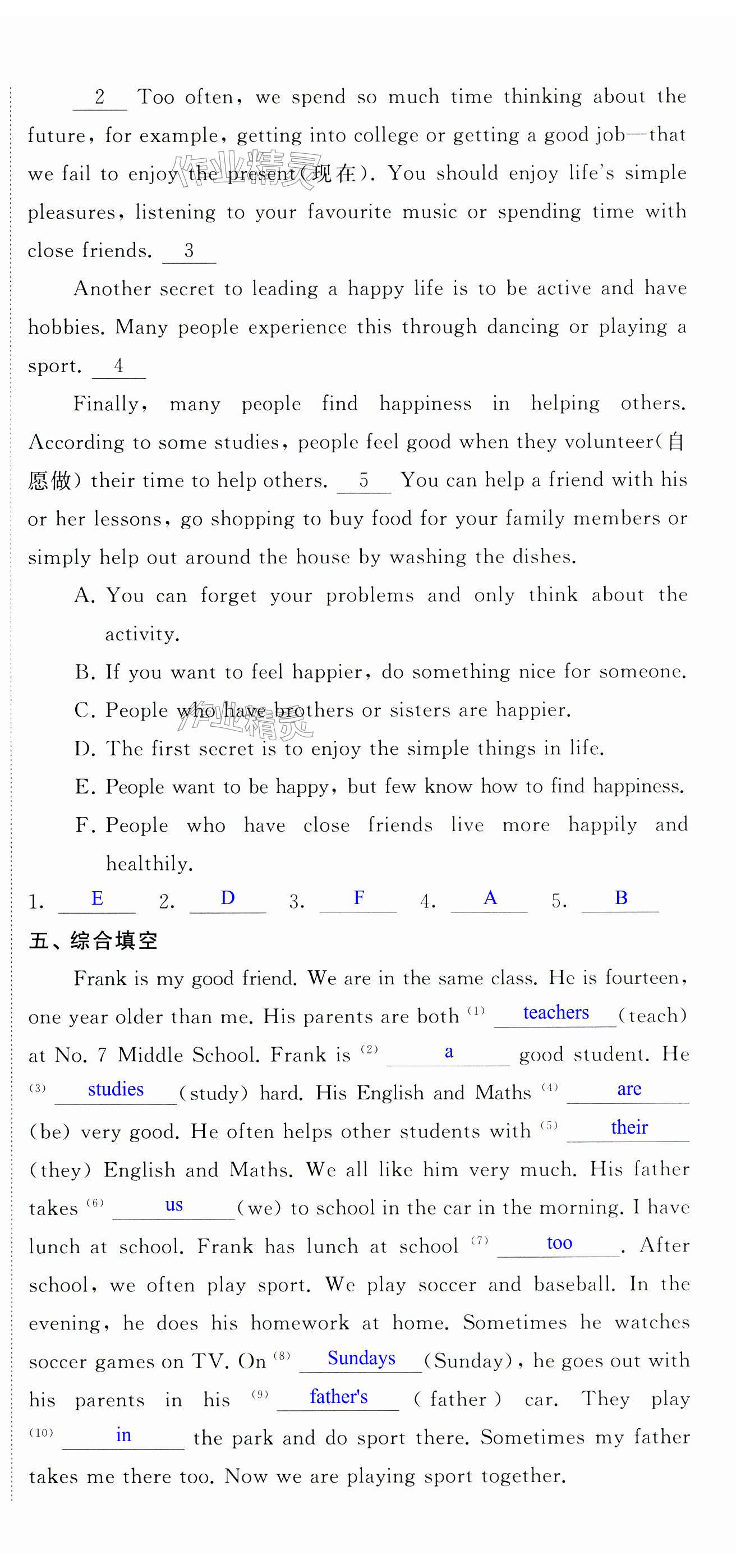 注:目前有些书本章节名称可能整理的还不是很完善,但都是按照顺序排列的,请同学们按照顺序仔细查找。练习册 2024年自我提升与评价七年级英语上册译林版 答案主要是用来给同学们做完题方便对答案用的,请勿直接抄袭。