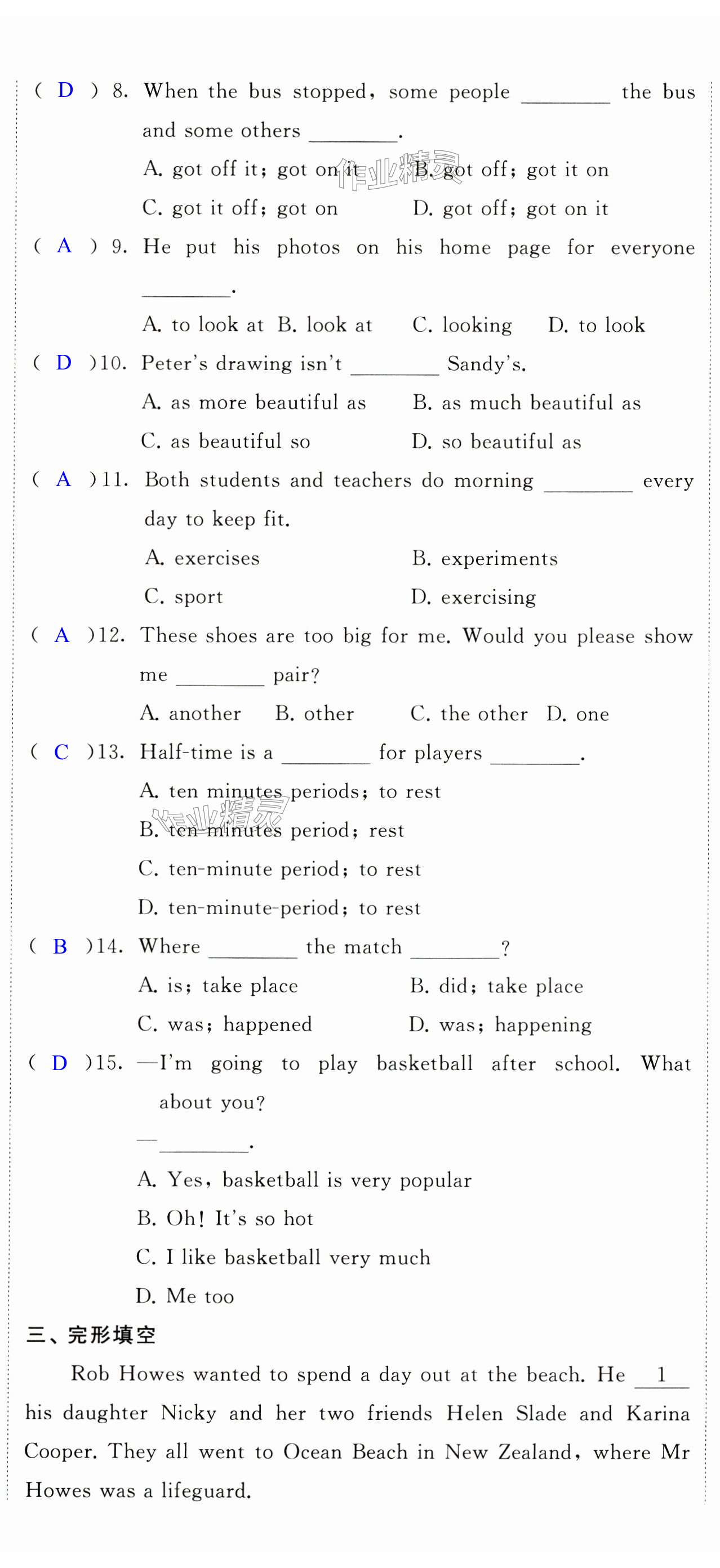 注:目前有些书本章节名称可能整理的还不是很完善,但都是按照顺序排列的,请同学们按照顺序仔细查找。练习册 2024年自我提升与评价八年级英语上册译林版 答案主要是用来给同学们做完题方便对答案用的,请勿直接抄袭。