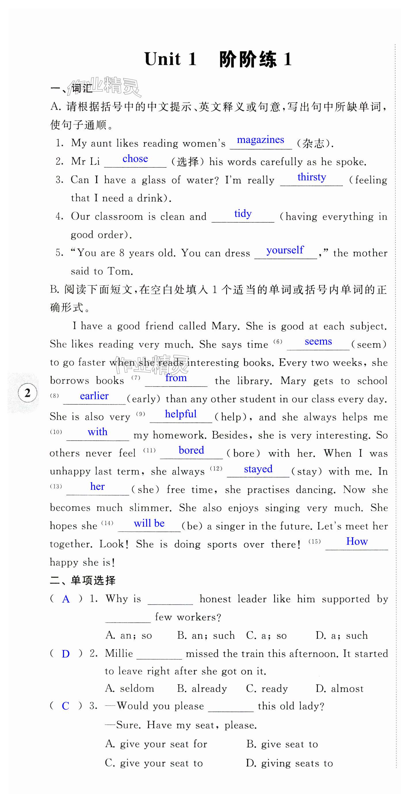 注:目前有些书本章节名称可能整理的还不是很完善,但都是按照顺序排列的,请同学们按照顺序仔细查找。练习册 2024年自我提升与评价八年级英语上册译林版 答案主要是用来给同学们做完题方便对答案用的,请勿直接抄袭。