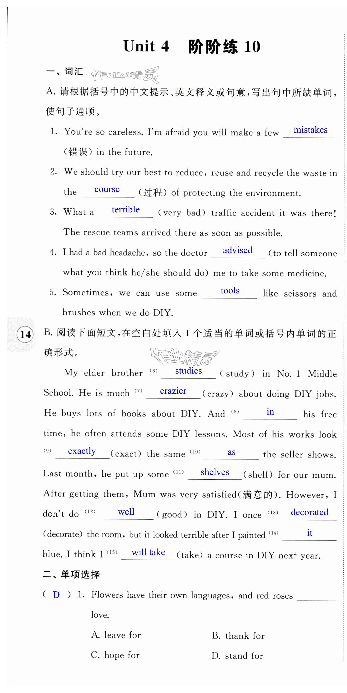 注:目前有些书本章节名称可能整理的还不是很完善,但都是按照顺序排列的,请同学们按照顺序仔细查找。练习册 2024年自我提升与评价八年级英语上册译林版 答案主要是用来给同学们做完题方便对答案用的,请勿直接抄袭。