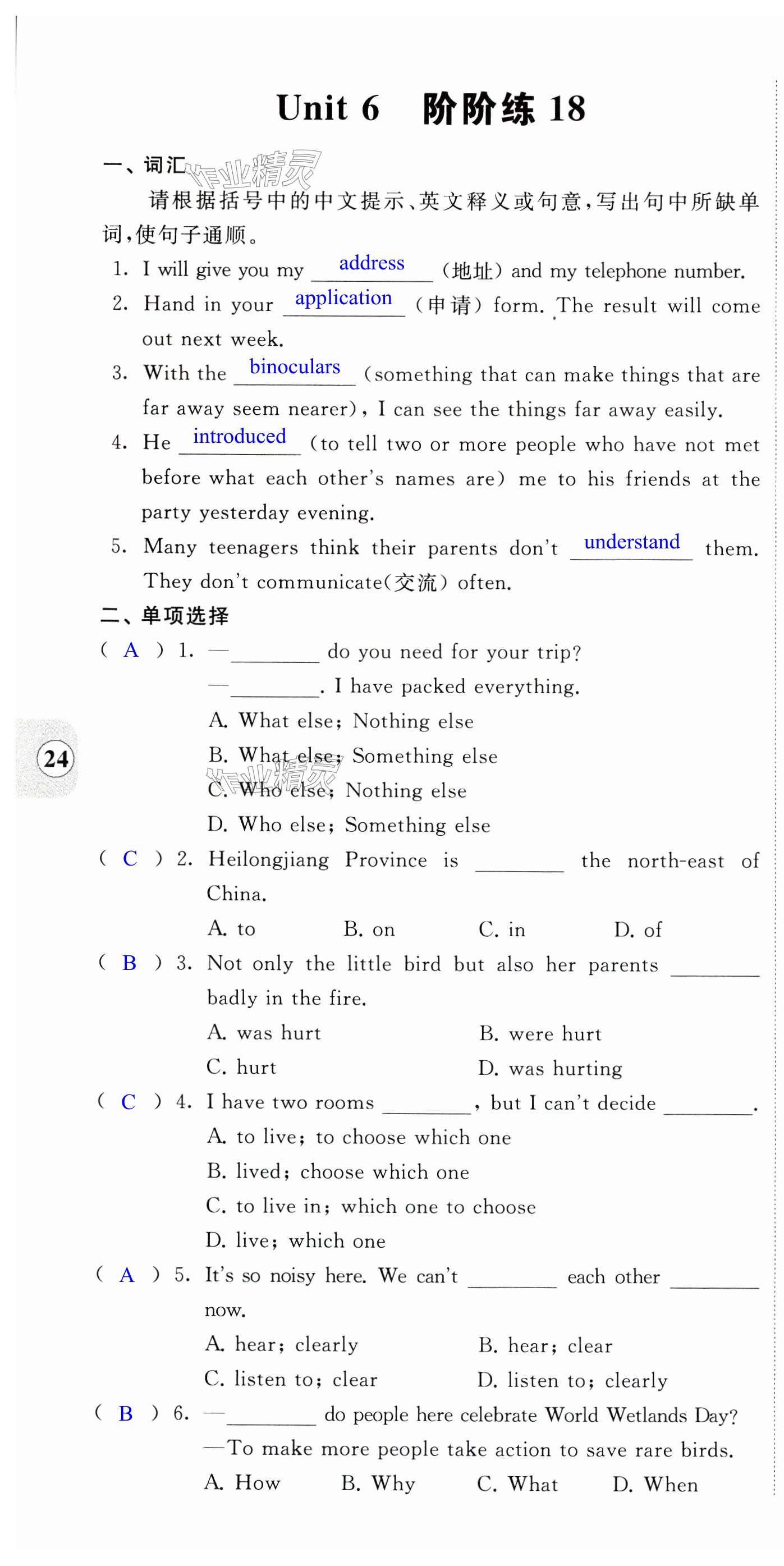 注:目前有些书本章节名称可能整理的还不是很完善,但都是按照顺序排列的,请同学们按照顺序仔细查找。练习册 2024年自我提升与评价八年级英语上册译林版 答案主要是用来给同学们做完题方便对答案用的,请勿直接抄袭。