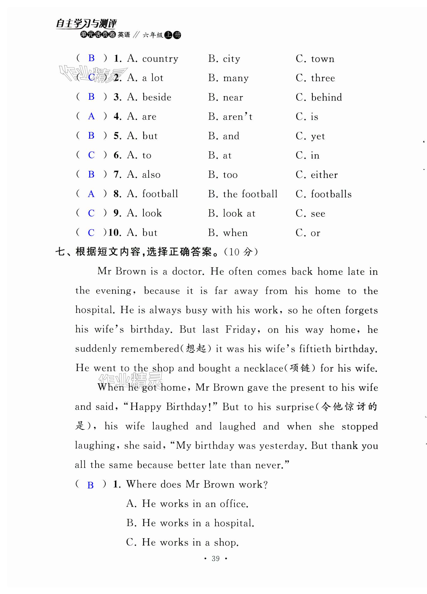 注:目前有些书本章节名称可能整理的还不是很完善,但都是按照顺序排列的,请同学们按照顺序仔细查找。练习册 2024年自主学习与测评单元活页卷六年级英语上册译林版 答案主要是用来给同学们做完题方便对答案用的,请勿直接抄袭。