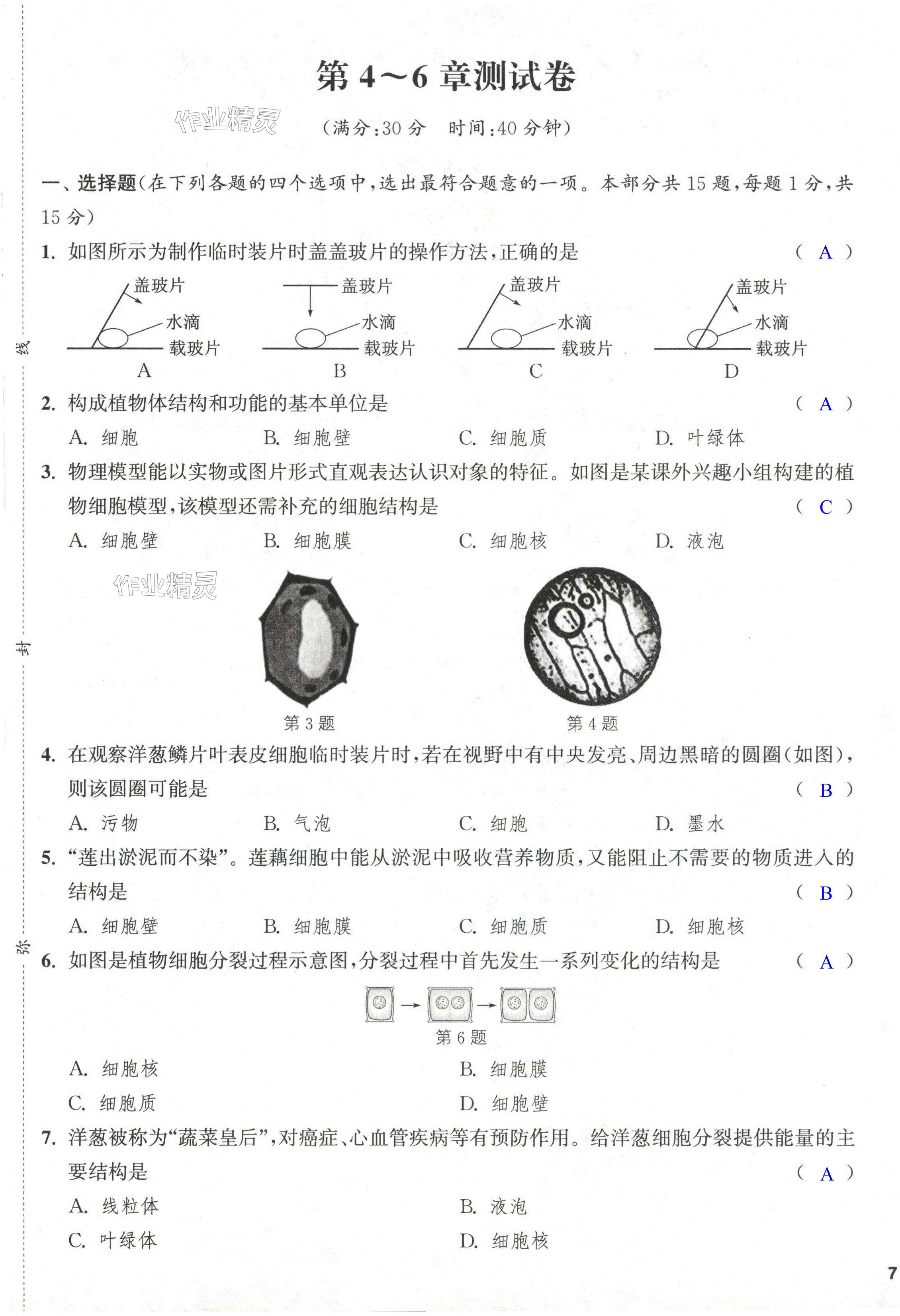 注:目前有些书本章节名称可能整理的还不是很完善,但都是按照顺序排列的,请同学们按照顺序仔细查找。练习册 2024年金钥匙课时学案作业本七年级生物上册苏科版 答案主要是用来给同学们做完题方便对答案用的,请勿直接抄袭。