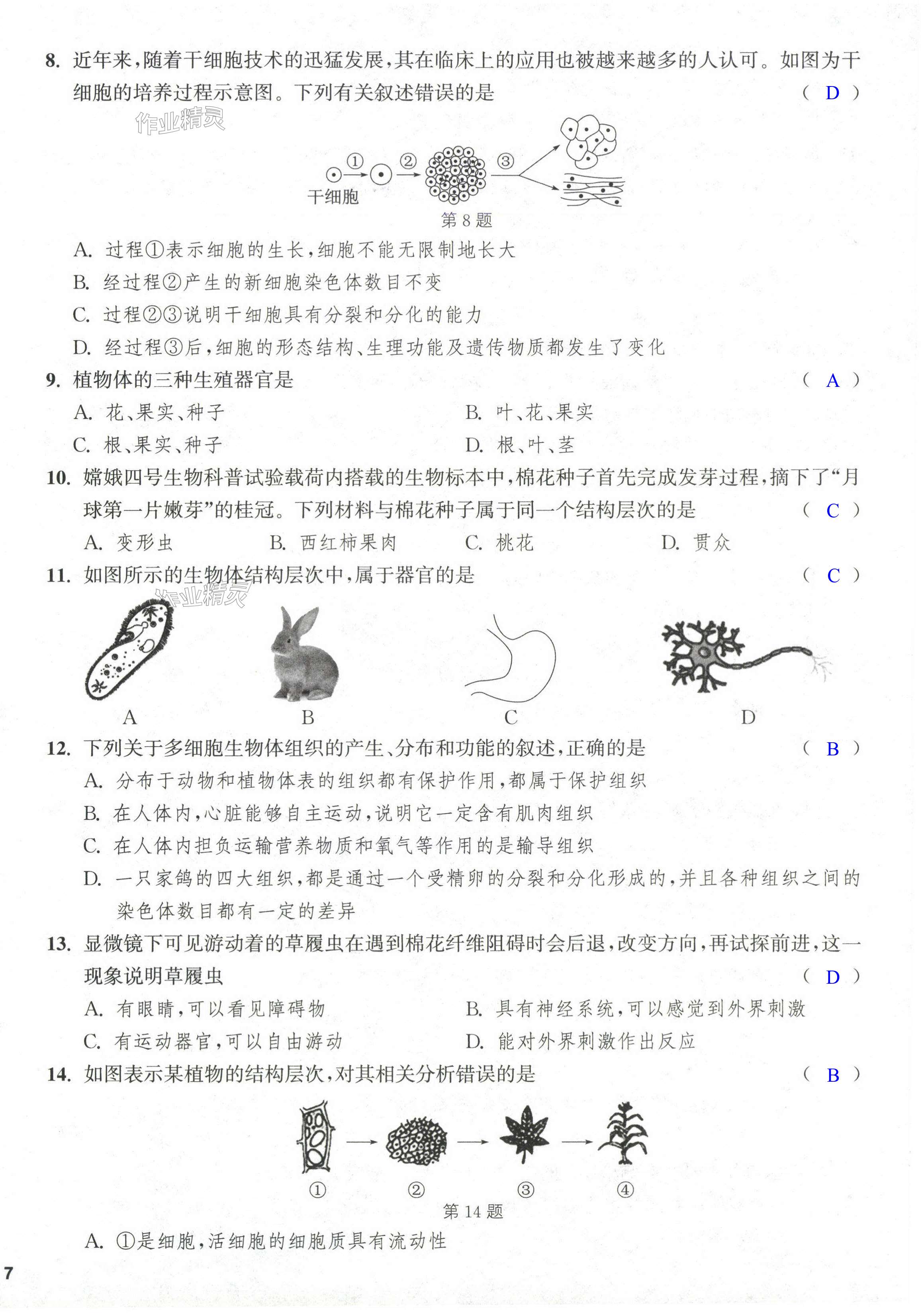 注:目前有些书本章节名称可能整理的还不是很完善,但都是按照顺序排列的,请同学们按照顺序仔细查找。练习册 2024年金钥匙课时学案作业本七年级生物上册苏科版 答案主要是用来给同学们做完题方便对答案用的,请勿直接抄袭。
