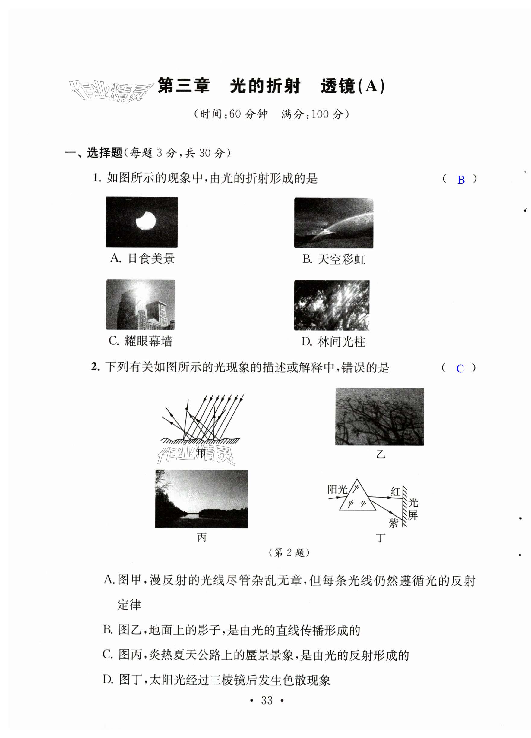 注:目前有些书本章节名称可能整理的还不是很完善,但都是按照顺序排列的,请同学们按照顺序仔细查找。练习册 2024年伴你学活页卷八年级物理上册苏科版 答案主要是用来给同学们做完题方便对答案用的,请勿直接抄袭。
