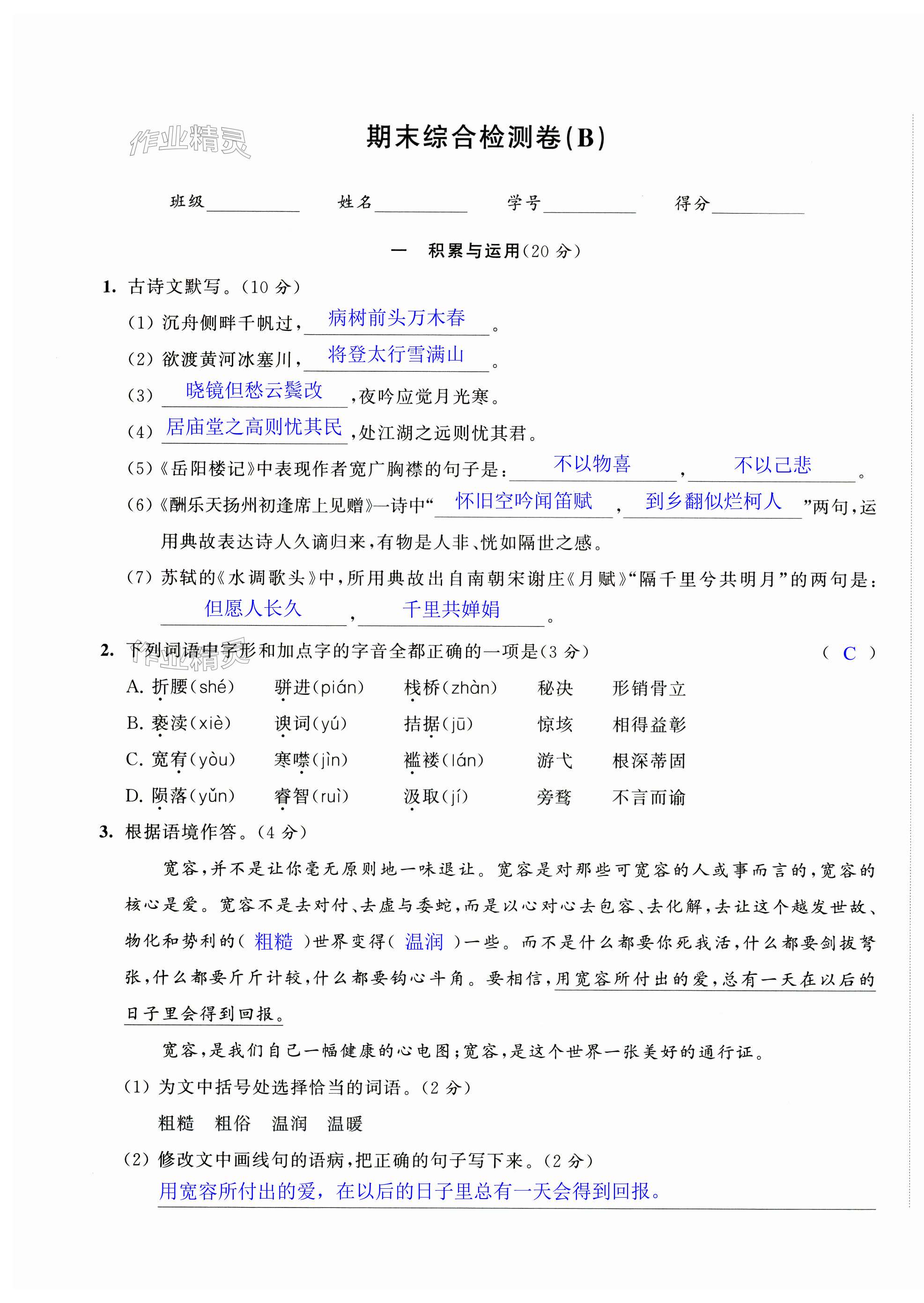 注:目前有些书本章节名称可能整理的还不是很完善,但都是按照顺序排列的,请同学们按照顺序仔细查找。练习册 2024年阳光互动绿色成长空间九年级语文上册提优版 答案主要是用来给同学们做完题方便对答案用的,请勿直接抄袭。