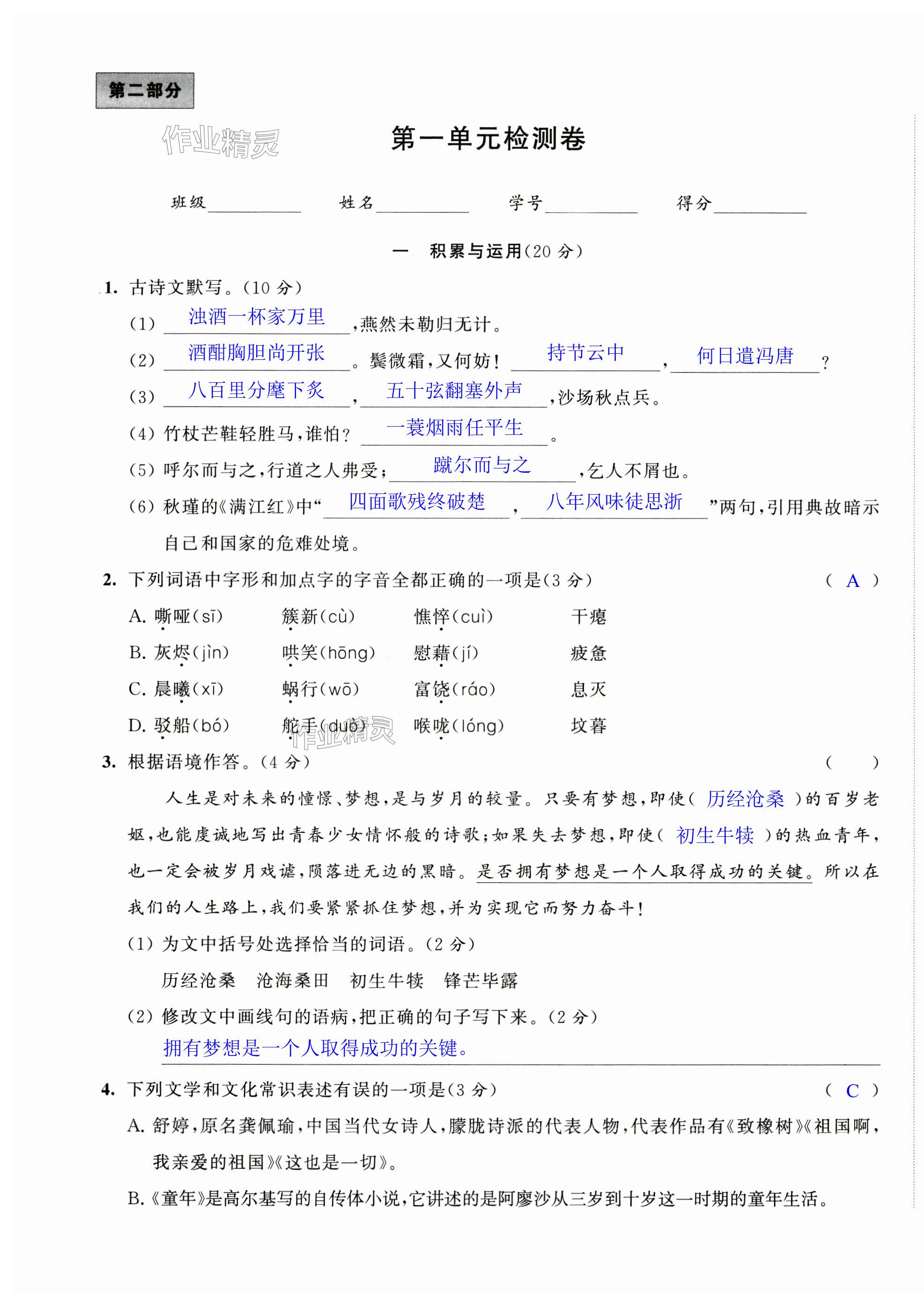 注:目前有些书本章节名称可能整理的还不是很完善,但都是按照顺序排列的,请同学们按照顺序仔细查找。练习册 2024年阳光互动绿色成长空间九年级语文上册提优版 答案主要是用来给同学们做完题方便对答案用的,请勿直接抄袭。