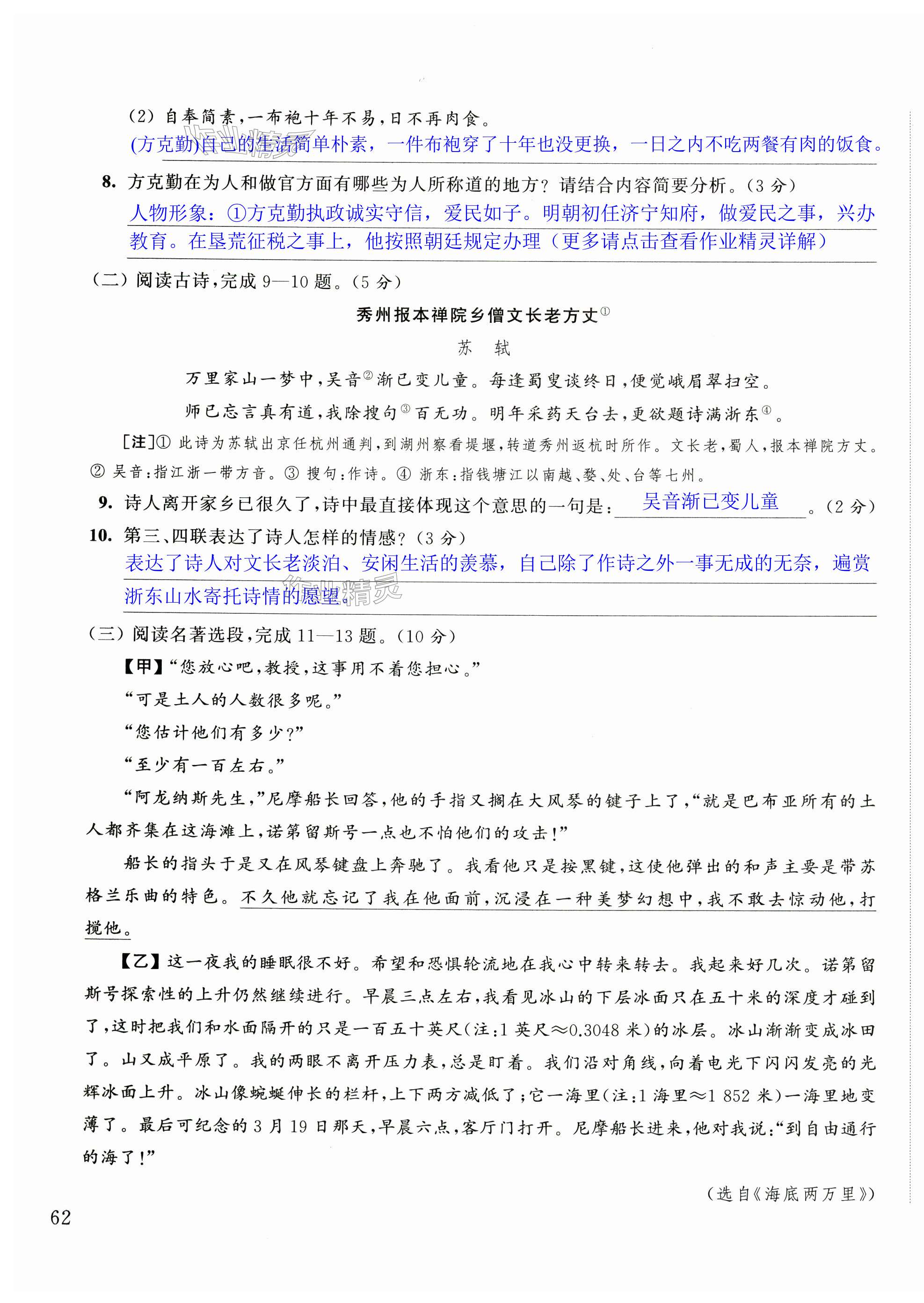 注:目前有些书本章节名称可能整理的还不是很完善,但都是按照顺序排列的,请同学们按照顺序仔细查找。练习册 2024年阳光互动绿色成长空间九年级语文上册提优版 答案主要是用来给同学们做完题方便对答案用的,请勿直接抄袭。