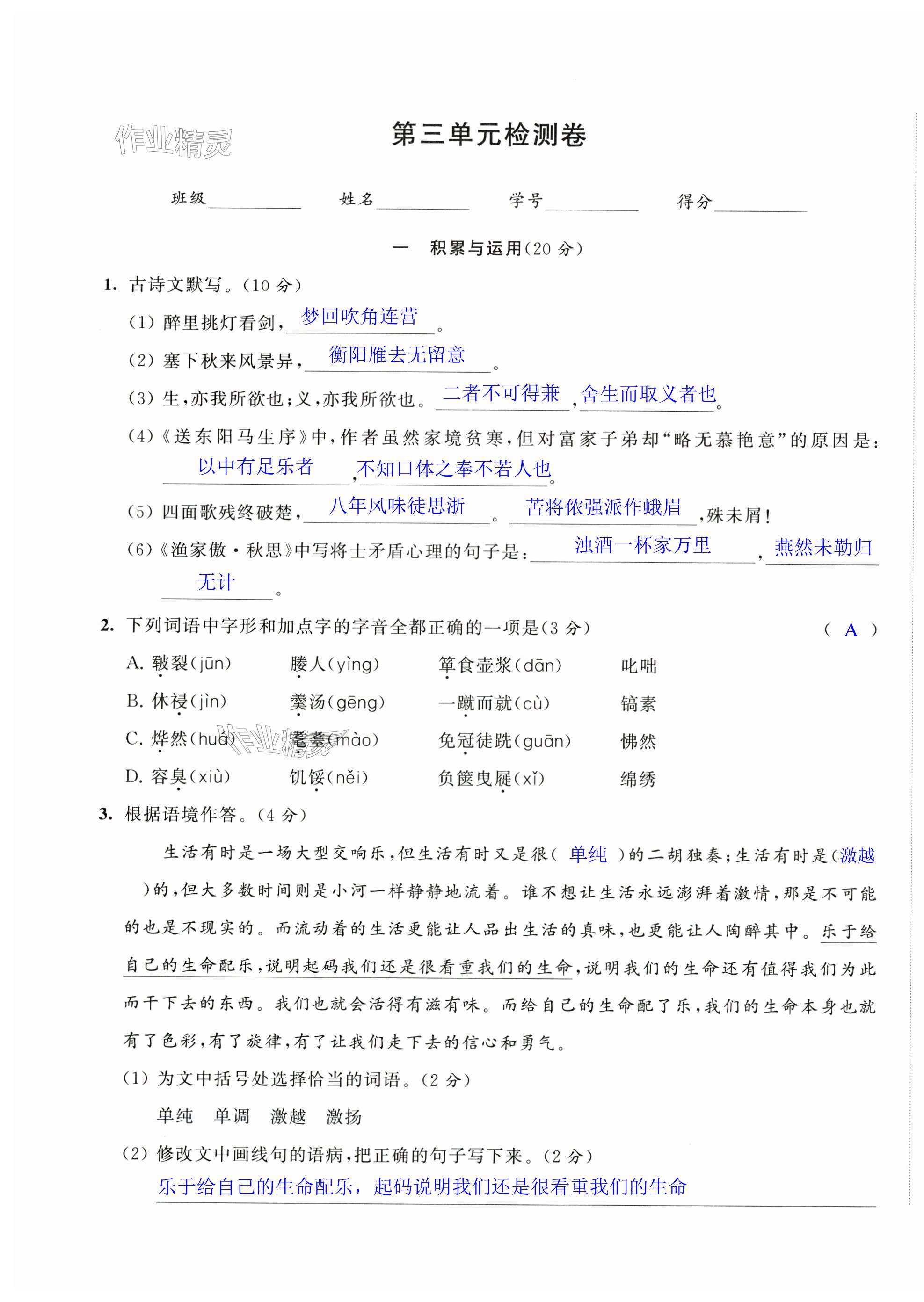 注:目前有些书本章节名称可能整理的还不是很完善,但都是按照顺序排列的,请同学们按照顺序仔细查找。练习册 2024年阳光互动绿色成长空间九年级语文上册提优版 答案主要是用来给同学们做完题方便对答案用的,请勿直接抄袭。