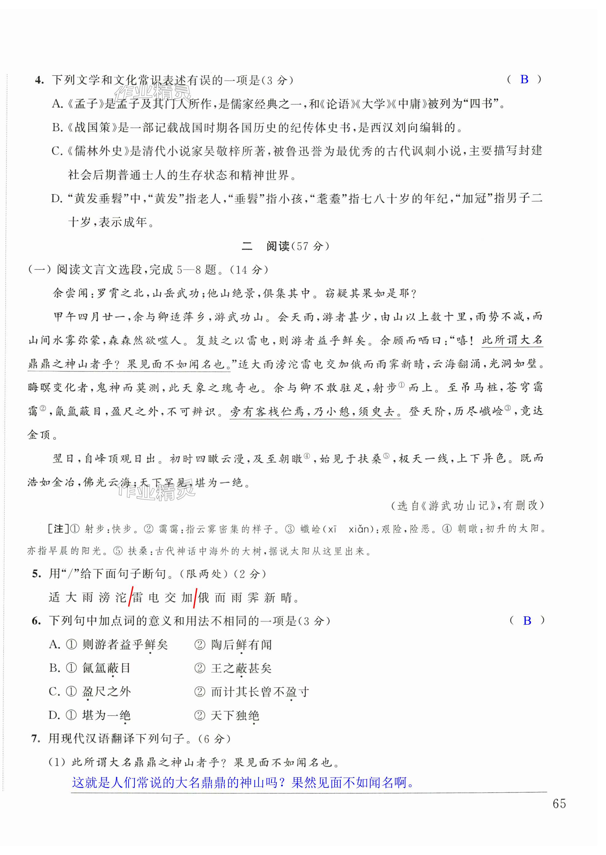 注:目前有些书本章节名称可能整理的还不是很完善,但都是按照顺序排列的,请同学们按照顺序仔细查找。练习册 2024年阳光互动绿色成长空间九年级语文上册提优版 答案主要是用来给同学们做完题方便对答案用的,请勿直接抄袭。