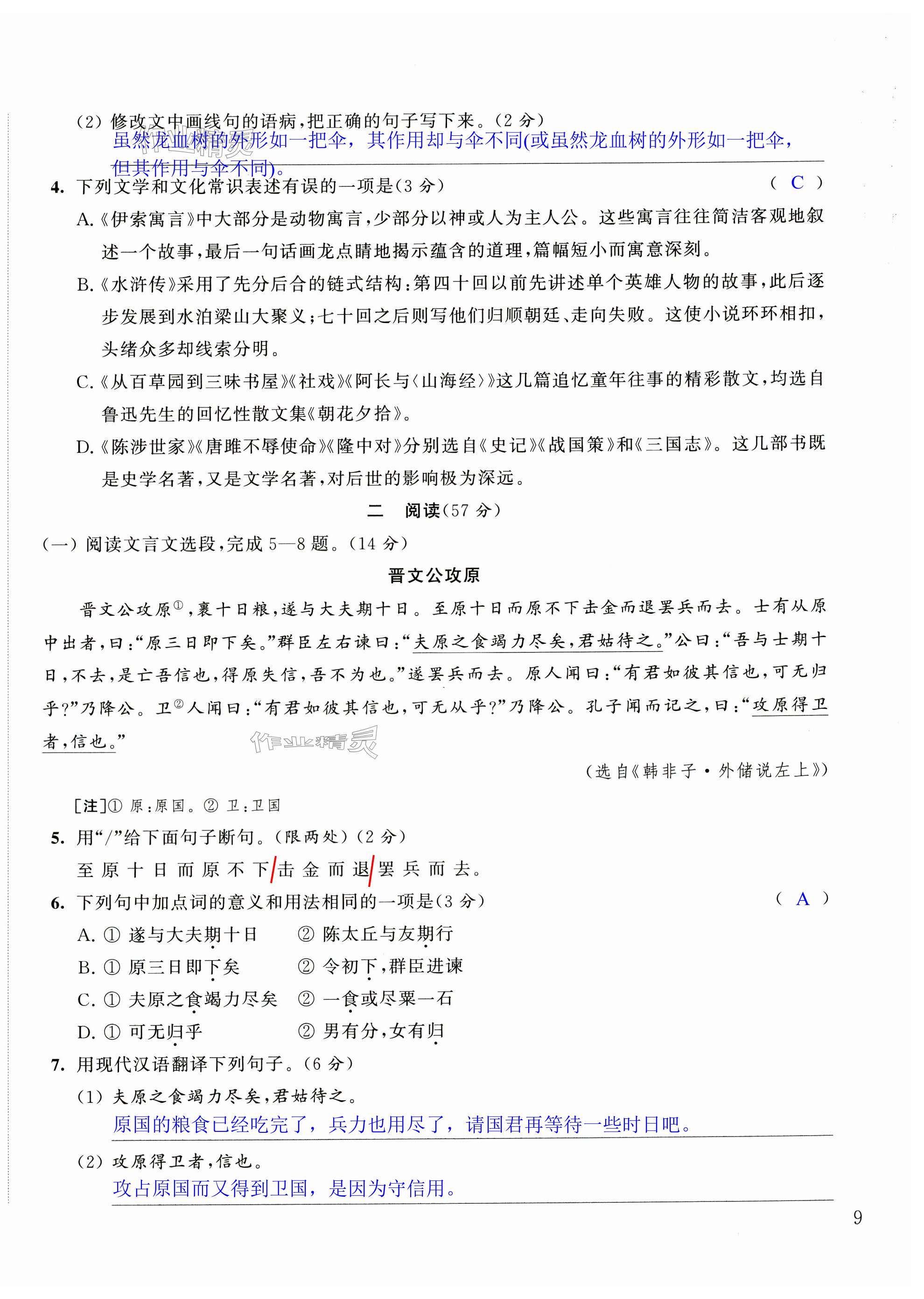 注:目前有些书本章节名称可能整理的还不是很完善,但都是按照顺序排列的,请同学们按照顺序仔细查找。练习册 2024年阳光互动绿色成长空间九年级语文上册提优版 答案主要是用来给同学们做完题方便对答案用的,请勿直接抄袭。