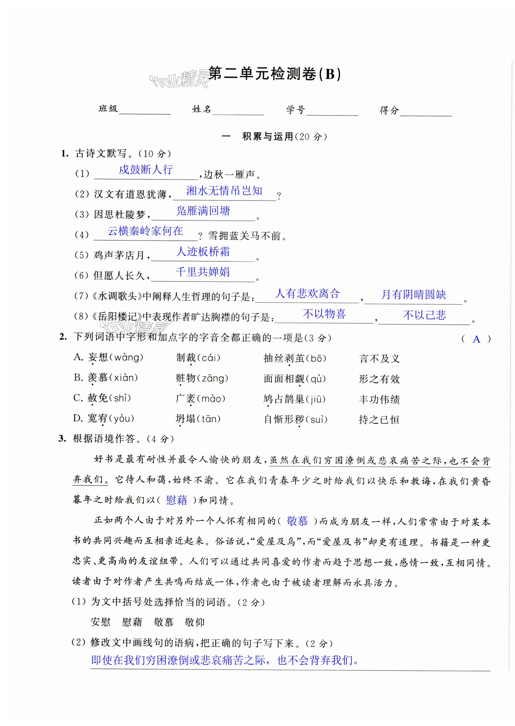 注:目前有些书本章节名称可能整理的还不是很完善,但都是按照顺序排列的,请同学们按照顺序仔细查找。练习册 2024年阳光互动绿色成长空间九年级语文上册提优版 答案主要是用来给同学们做完题方便对答案用的,请勿直接抄袭。
