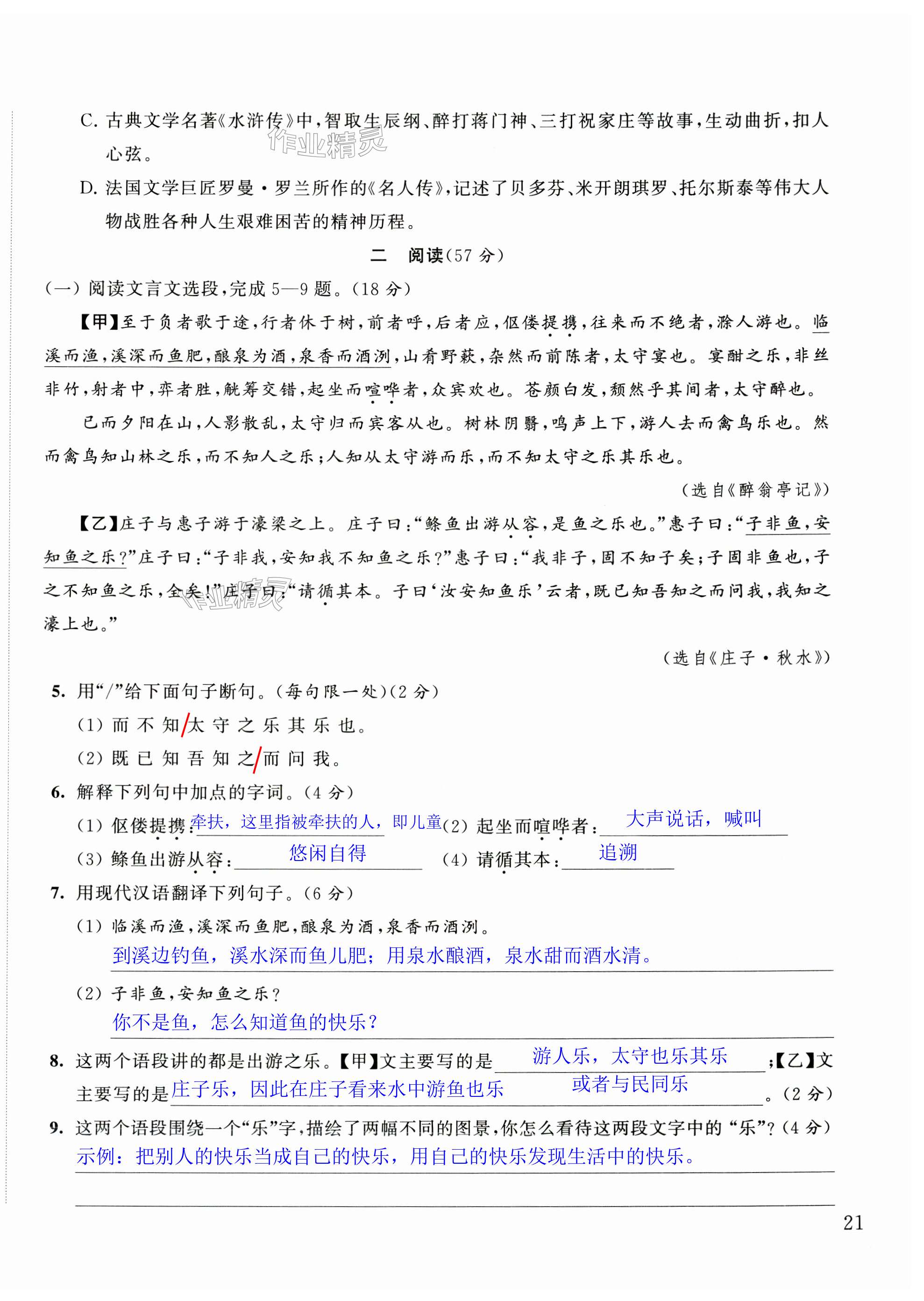 注:目前有些书本章节名称可能整理的还不是很完善,但都是按照顺序排列的,请同学们按照顺序仔细查找。练习册 2024年阳光互动绿色成长空间九年级语文上册提优版 答案主要是用来给同学们做完题方便对答案用的,请勿直接抄袭。