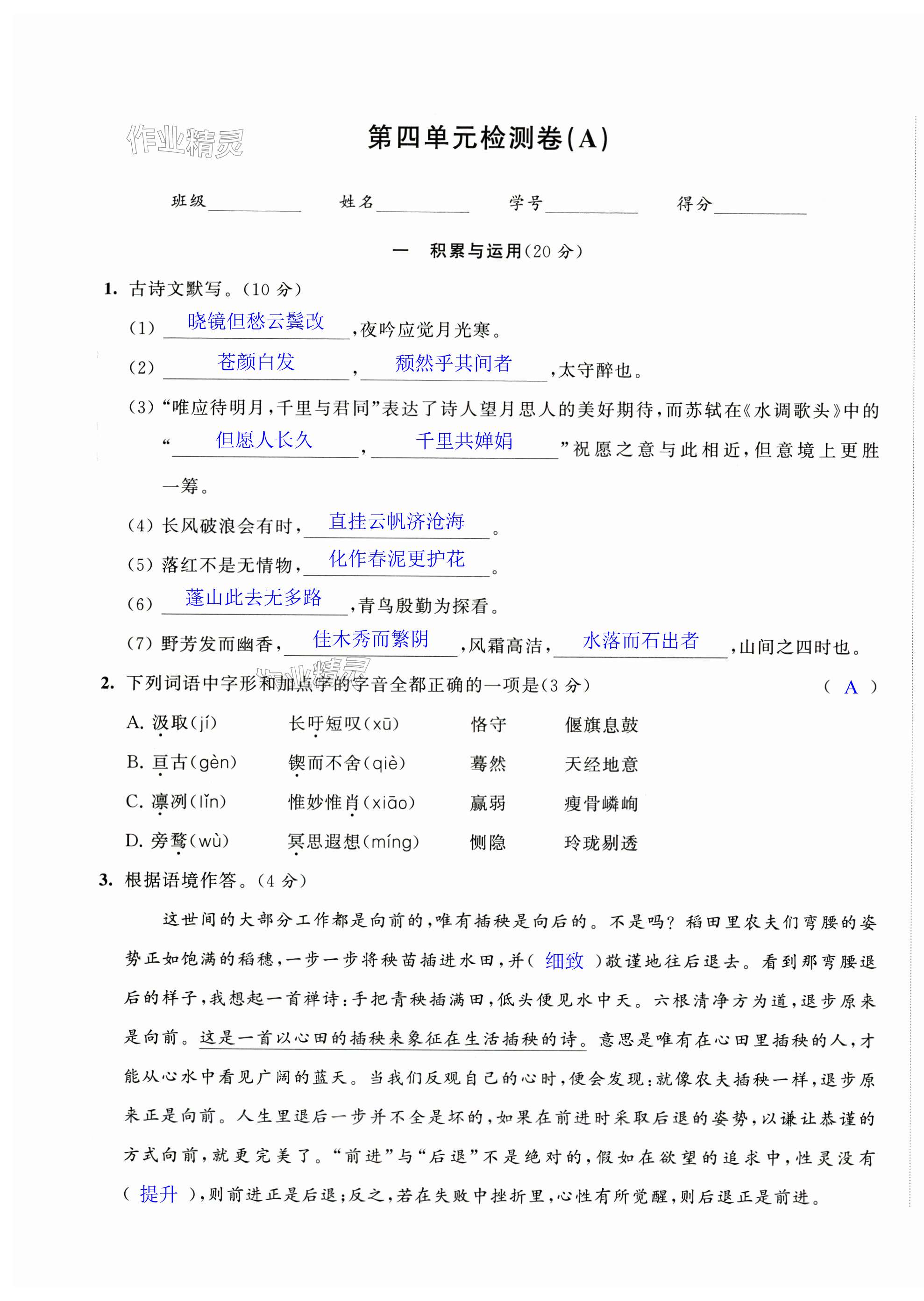 注:目前有些书本章节名称可能整理的还不是很完善,但都是按照顺序排列的,请同学们按照顺序仔细查找。练习册 2024年阳光互动绿色成长空间九年级语文上册提优版 答案主要是用来给同学们做完题方便对答案用的,请勿直接抄袭。