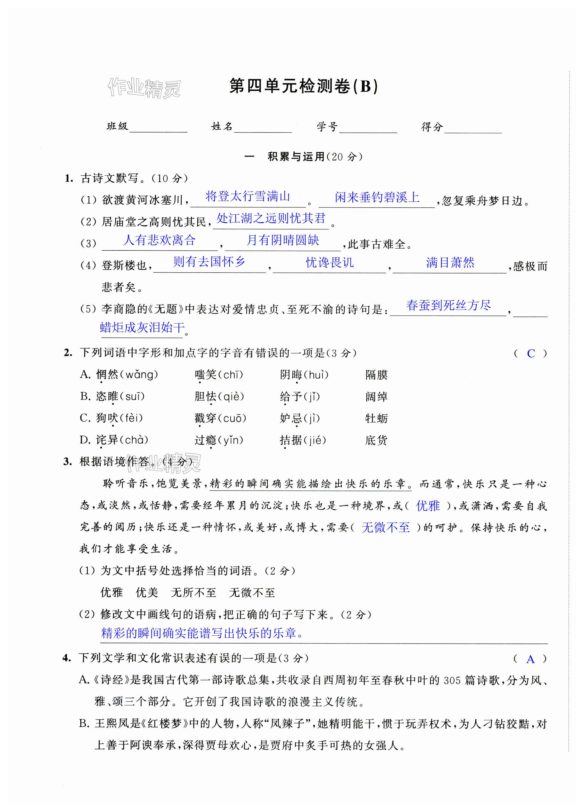 注:目前有些书本章节名称可能整理的还不是很完善,但都是按照顺序排列的,请同学们按照顺序仔细查找。练习册 2024年阳光互动绿色成长空间九年级语文上册提优版 答案主要是用来给同学们做完题方便对答案用的,请勿直接抄袭。