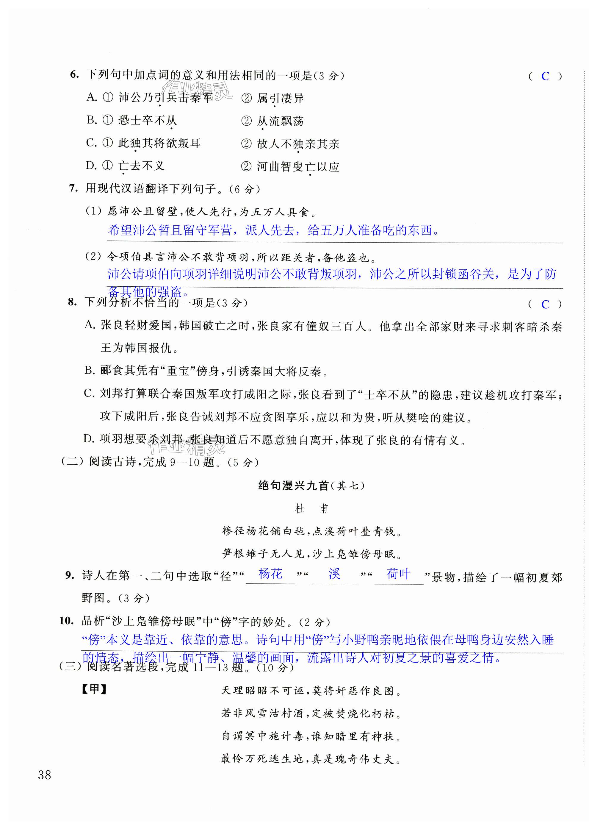 注:目前有些书本章节名称可能整理的还不是很完善,但都是按照顺序排列的,请同学们按照顺序仔细查找。练习册 2024年阳光互动绿色成长空间九年级语文上册提优版 答案主要是用来给同学们做完题方便对答案用的,请勿直接抄袭。