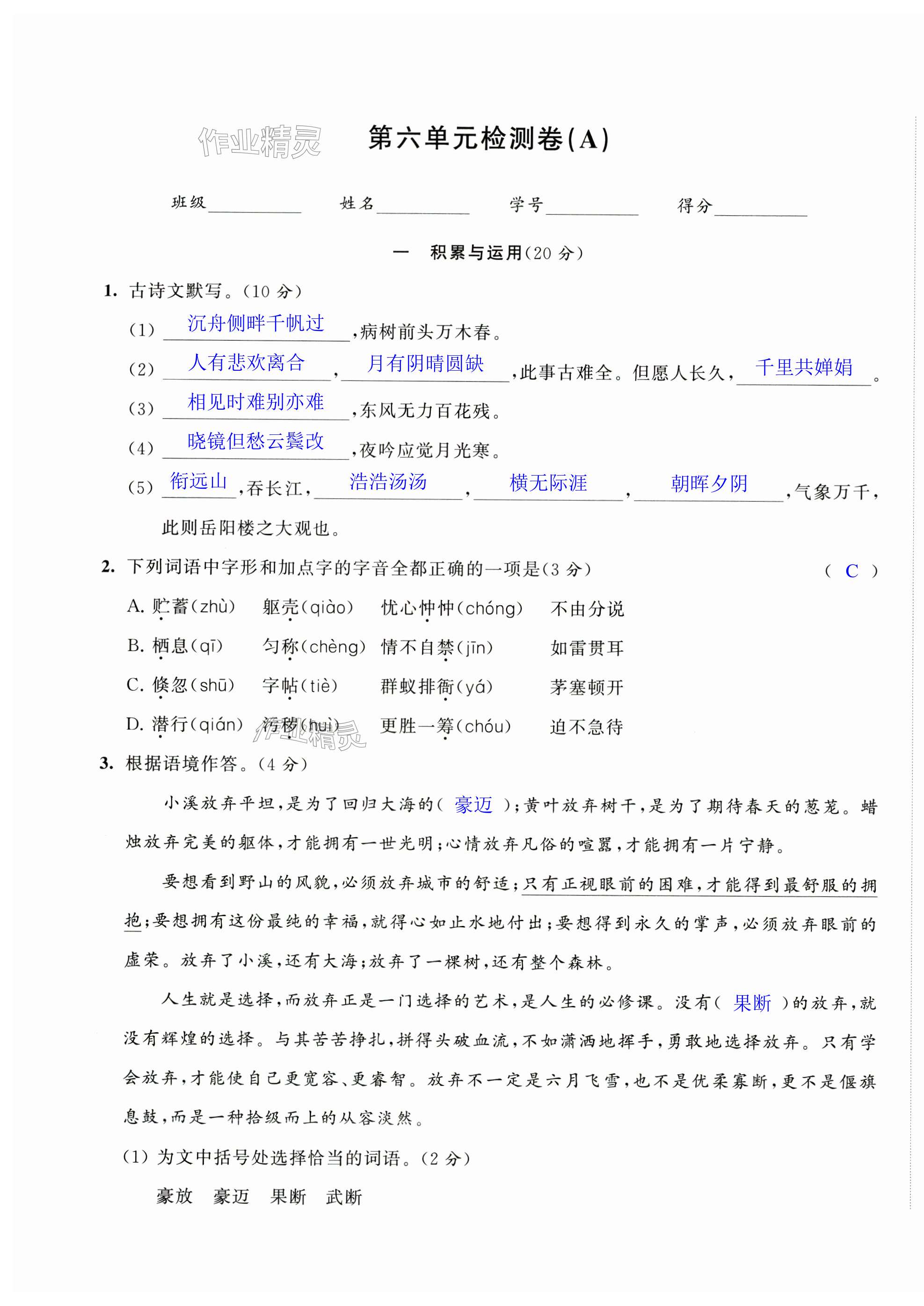 注:目前有些书本章节名称可能整理的还不是很完善,但都是按照顺序排列的,请同学们按照顺序仔细查找。练习册 2024年阳光互动绿色成长空间九年级语文上册提优版 答案主要是用来给同学们做完题方便对答案用的,请勿直接抄袭。