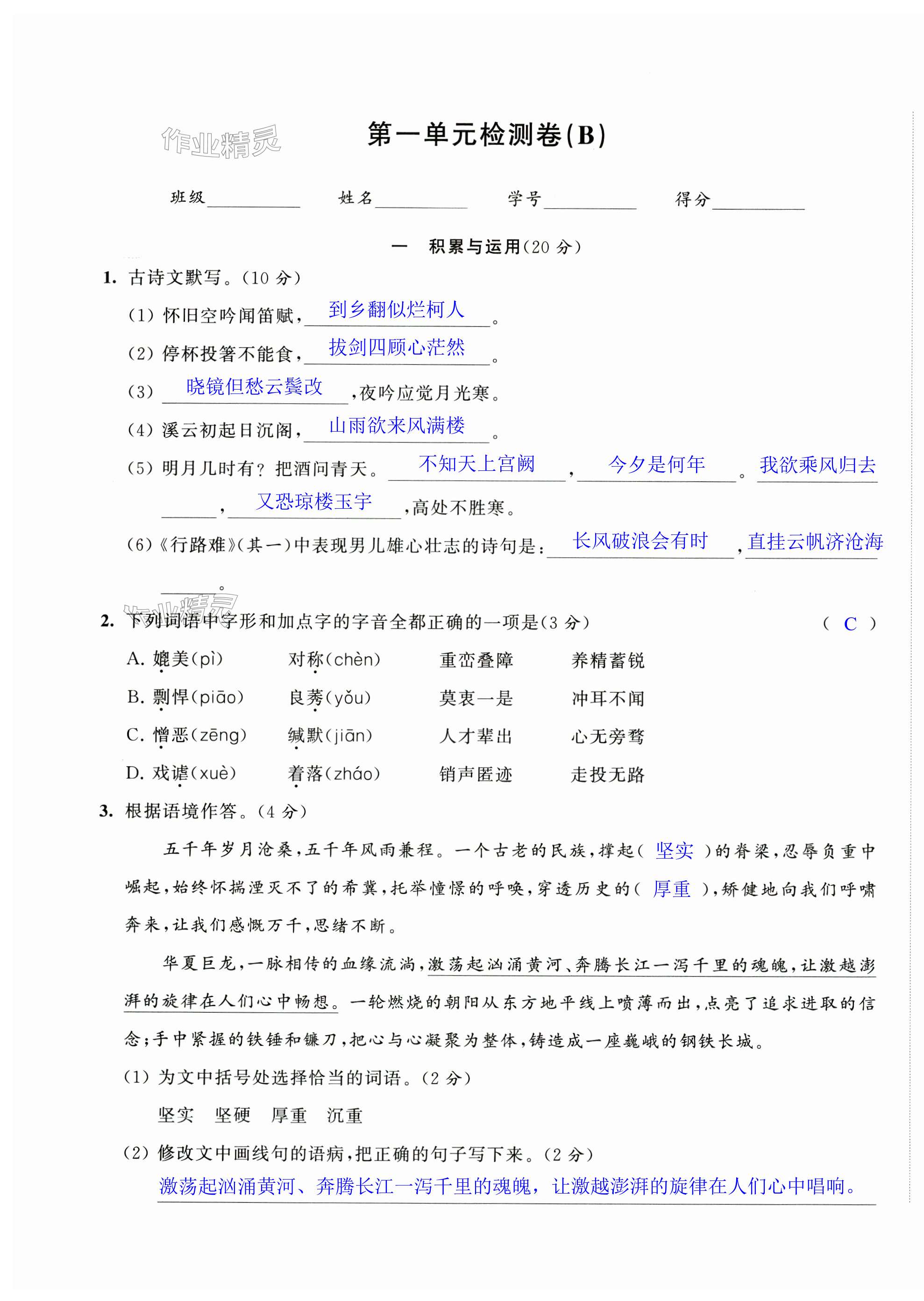 注:目前有些书本章节名称可能整理的还不是很完善,但都是按照顺序排列的,请同学们按照顺序仔细查找。练习册 2024年阳光互动绿色成长空间九年级语文上册提优版 答案主要是用来给同学们做完题方便对答案用的,请勿直接抄袭。