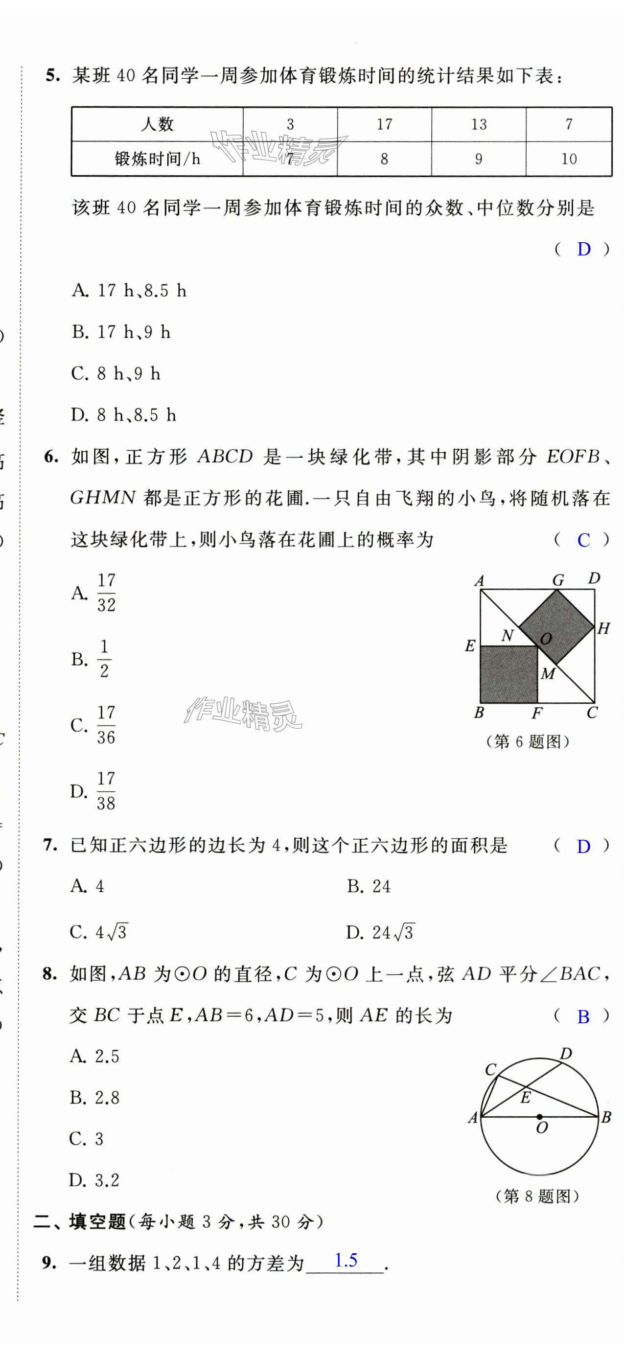 2024年阳光互动绿色成长空间九年级数学上册提优版