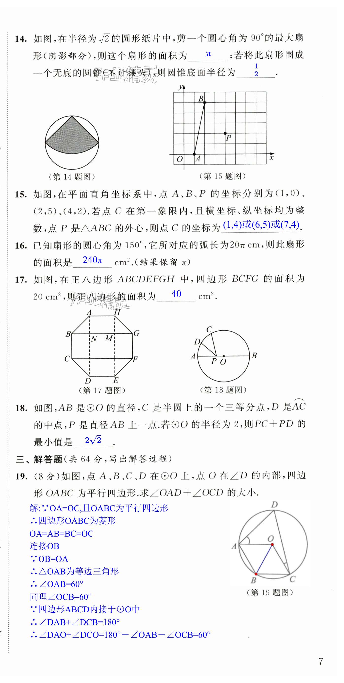 2024年阳光互动绿色成长空间九年级数学上册提优版