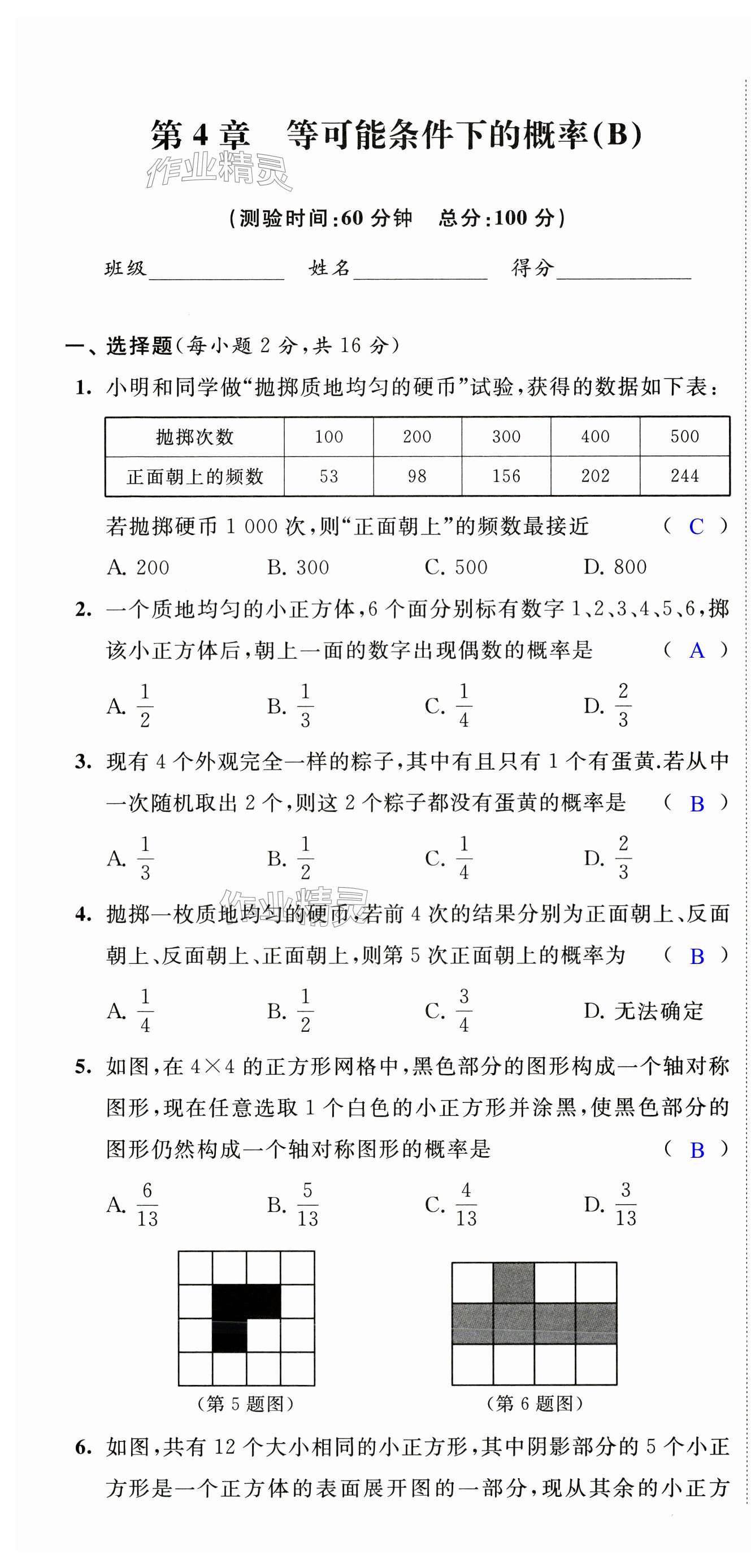 2024年阳光互动绿色成长空间九年级数学上册提优版