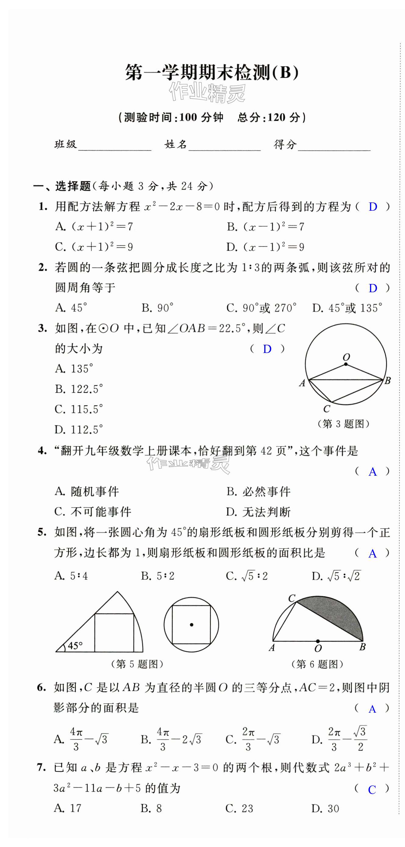 2024年阳光互动绿色成长空间九年级数学上册提优版