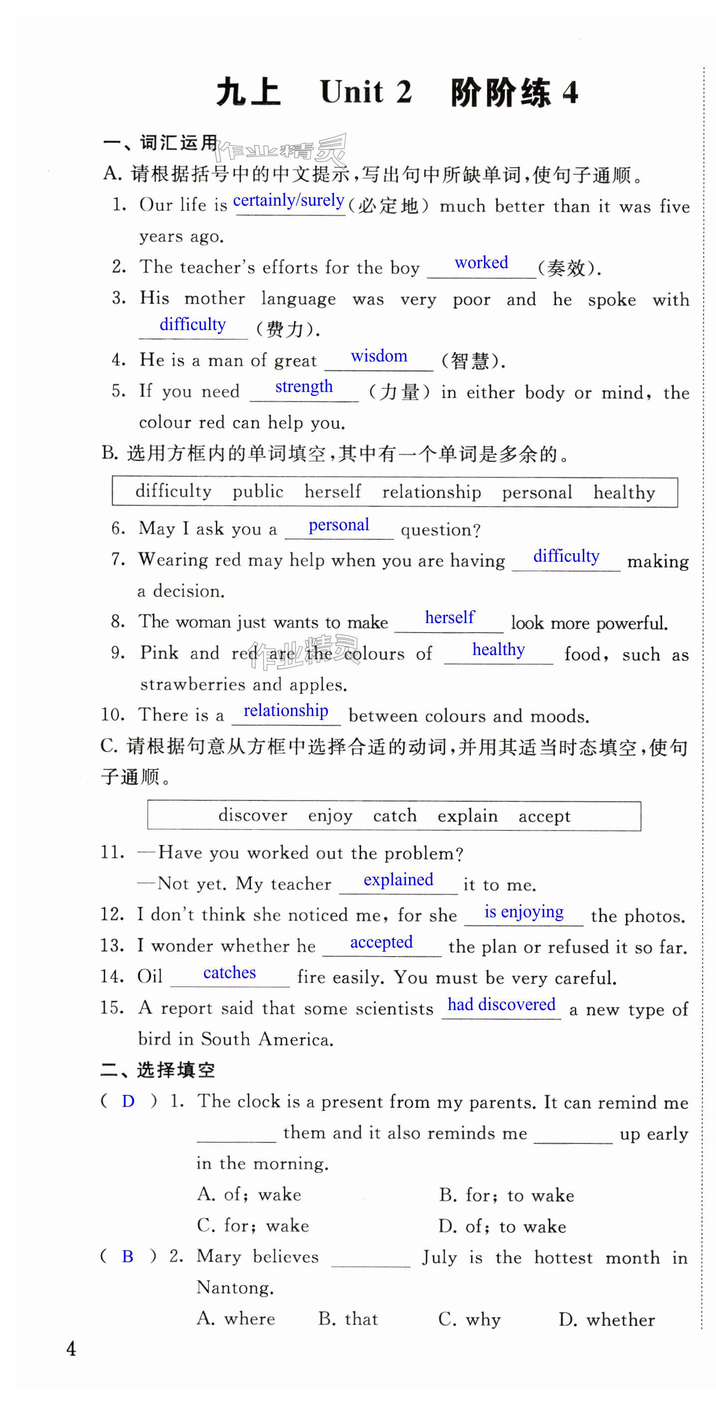 注:目前有些书本章节名称可能整理的还不是很完善,但都是按照顺序排列的,请同学们按照顺序仔细查找。练习册 2024年阳光互动绿色成长空间九年级英语上册译林版提优版 答案主要是用来给同学们做完题方便对答案用的,请勿直接抄袭。