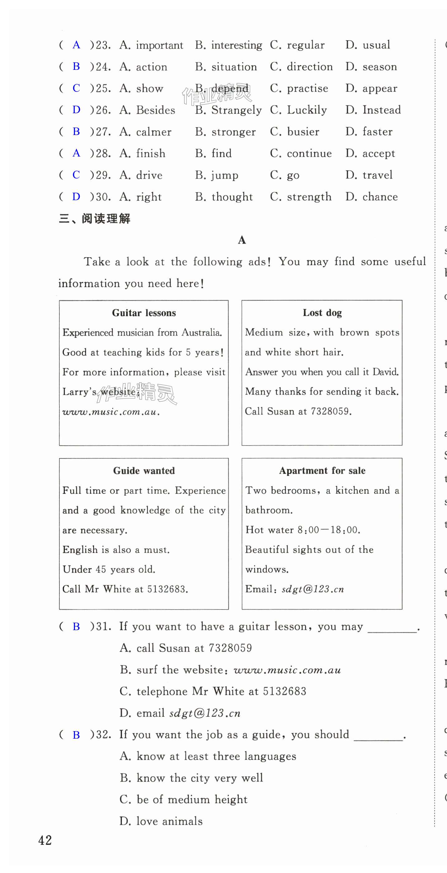 注:目前有些书本章节名称可能整理的还不是很完善,但都是按照顺序排列的,请同学们按照顺序仔细查找。练习册 2024年阳光互动绿色成长空间九年级英语上册译林版提优版 答案主要是用来给同学们做完题方便对答案用的,请勿直接抄袭。