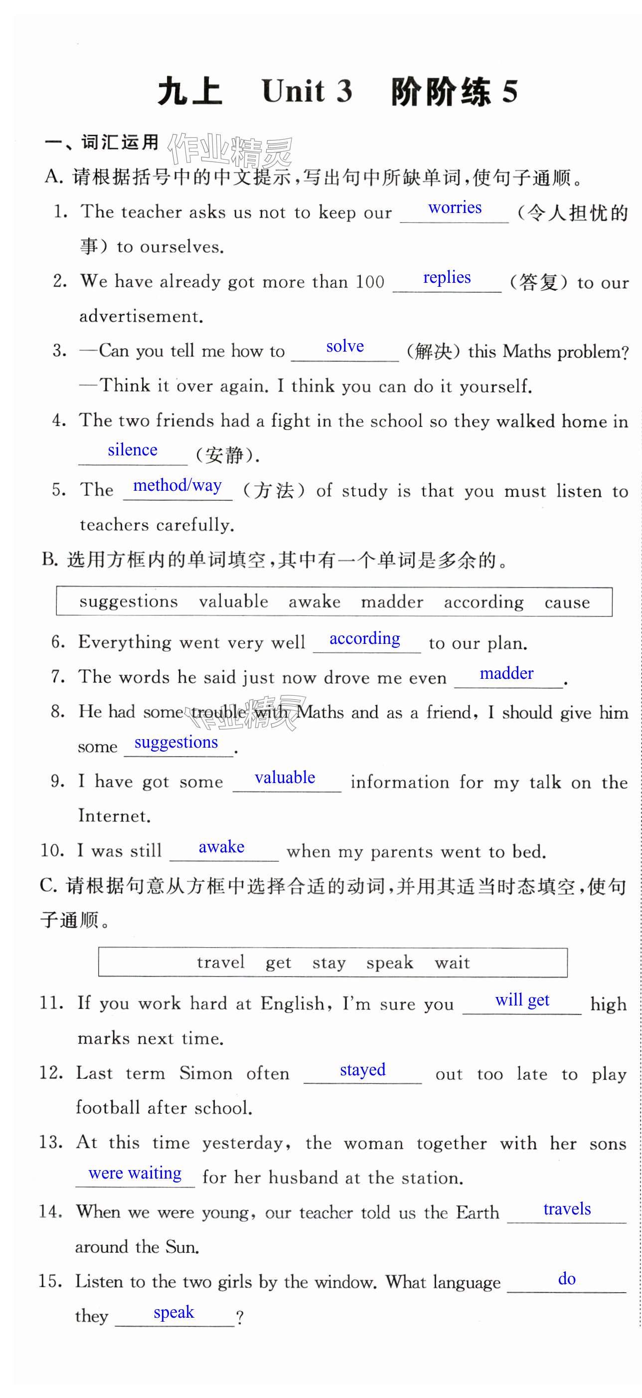 注:目前有些书本章节名称可能整理的还不是很完善,但都是按照顺序排列的,请同学们按照顺序仔细查找。练习册 2024年阳光互动绿色成长空间九年级英语上册译林版提优版 答案主要是用来给同学们做完题方便对答案用的,请勿直接抄袭。