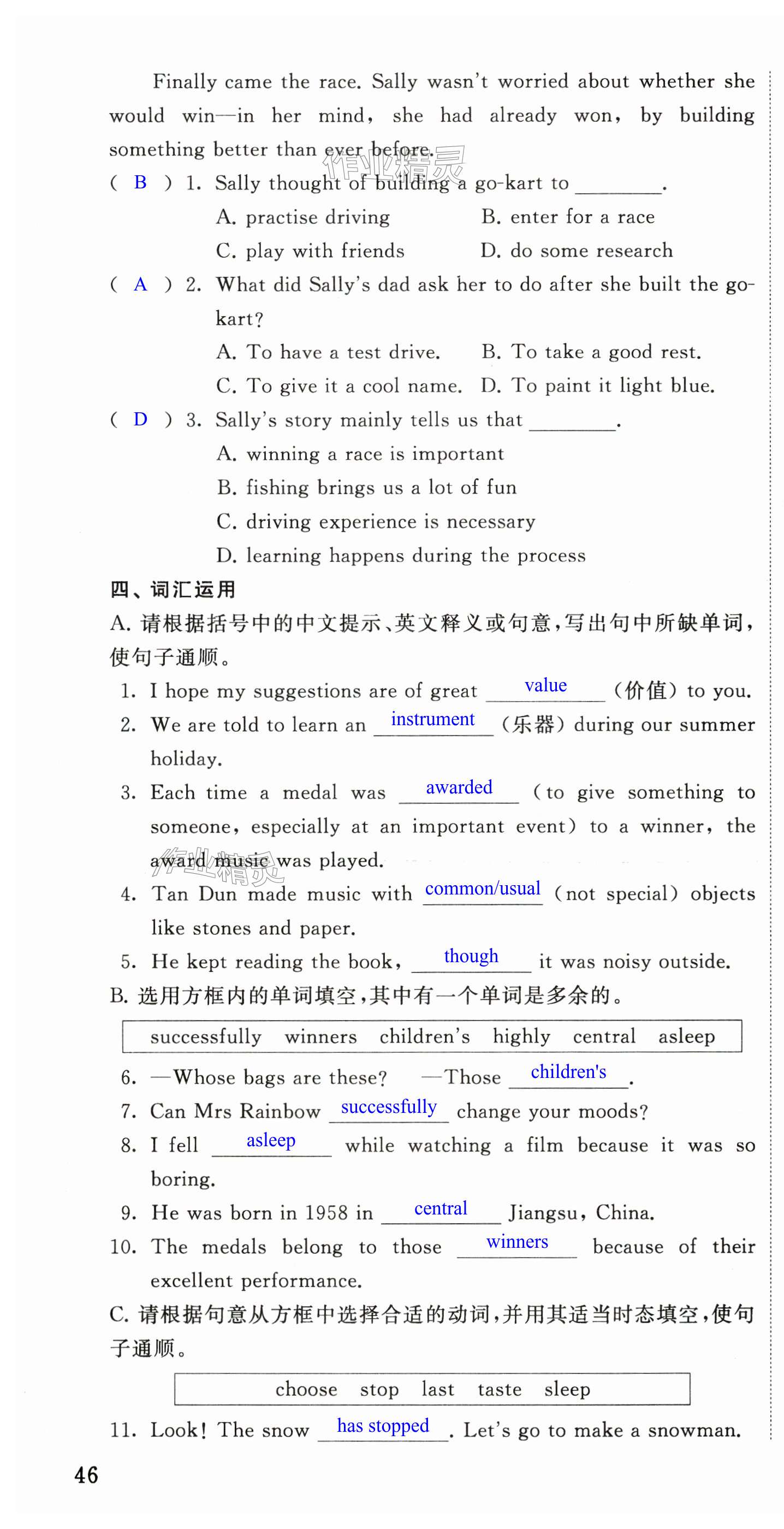 注:目前有些书本章节名称可能整理的还不是很完善,但都是按照顺序排列的,请同学们按照顺序仔细查找。练习册 2024年阳光互动绿色成长空间九年级英语上册译林版提优版 答案主要是用来给同学们做完题方便对答案用的,请勿直接抄袭。