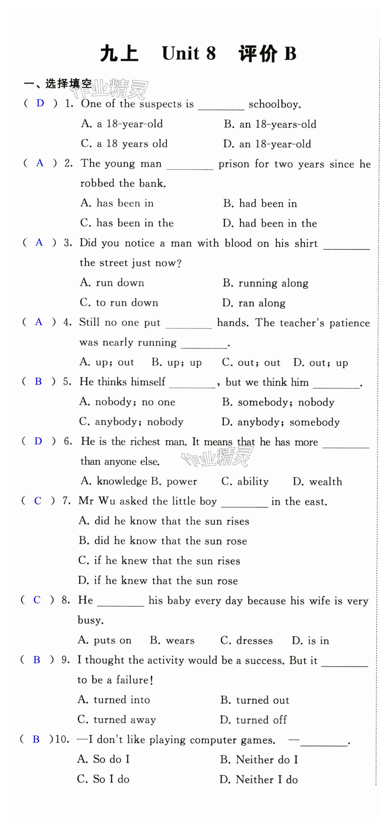 注:目前有些书本章节名称可能整理的还不是很完善,但都是按照顺序排列的,请同学们按照顺序仔细查找。练习册 2024年阳光互动绿色成长空间九年级英语上册译林版提优版 答案主要是用来给同学们做完题方便对答案用的,请勿直接抄袭。
