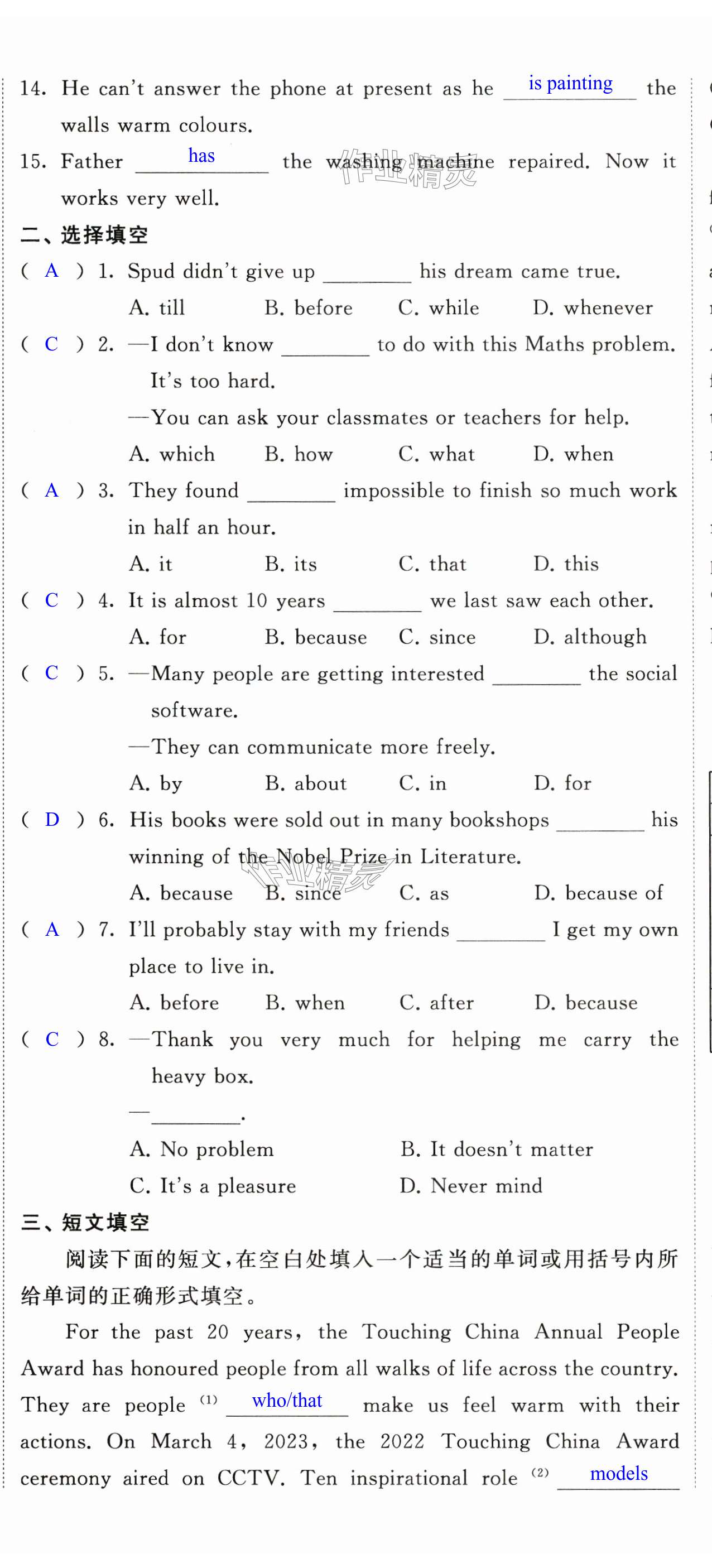 注:目前有些书本章节名称可能整理的还不是很完善,但都是按照顺序排列的,请同学们按照顺序仔细查找。练习册 2024年阳光互动绿色成长空间九年级英语上册译林版提优版 答案主要是用来给同学们做完题方便对答案用的,请勿直接抄袭。
