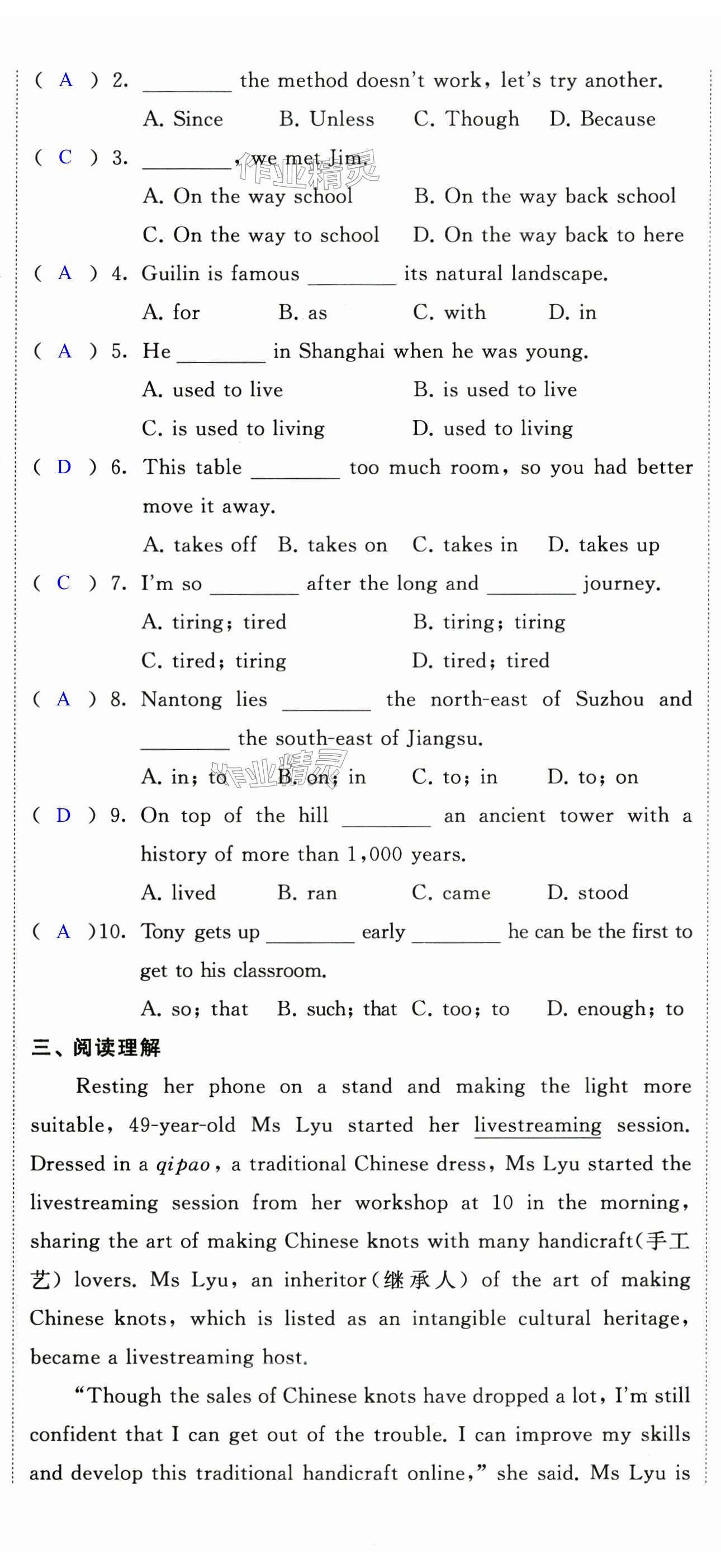 注:目前有些书本章节名称可能整理的还不是很完善,但都是按照顺序排列的,请同学们按照顺序仔细查找。练习册 2024年阳光互动绿色成长空间九年级英语上册译林版提优版 答案主要是用来给同学们做完题方便对答案用的,请勿直接抄袭。
