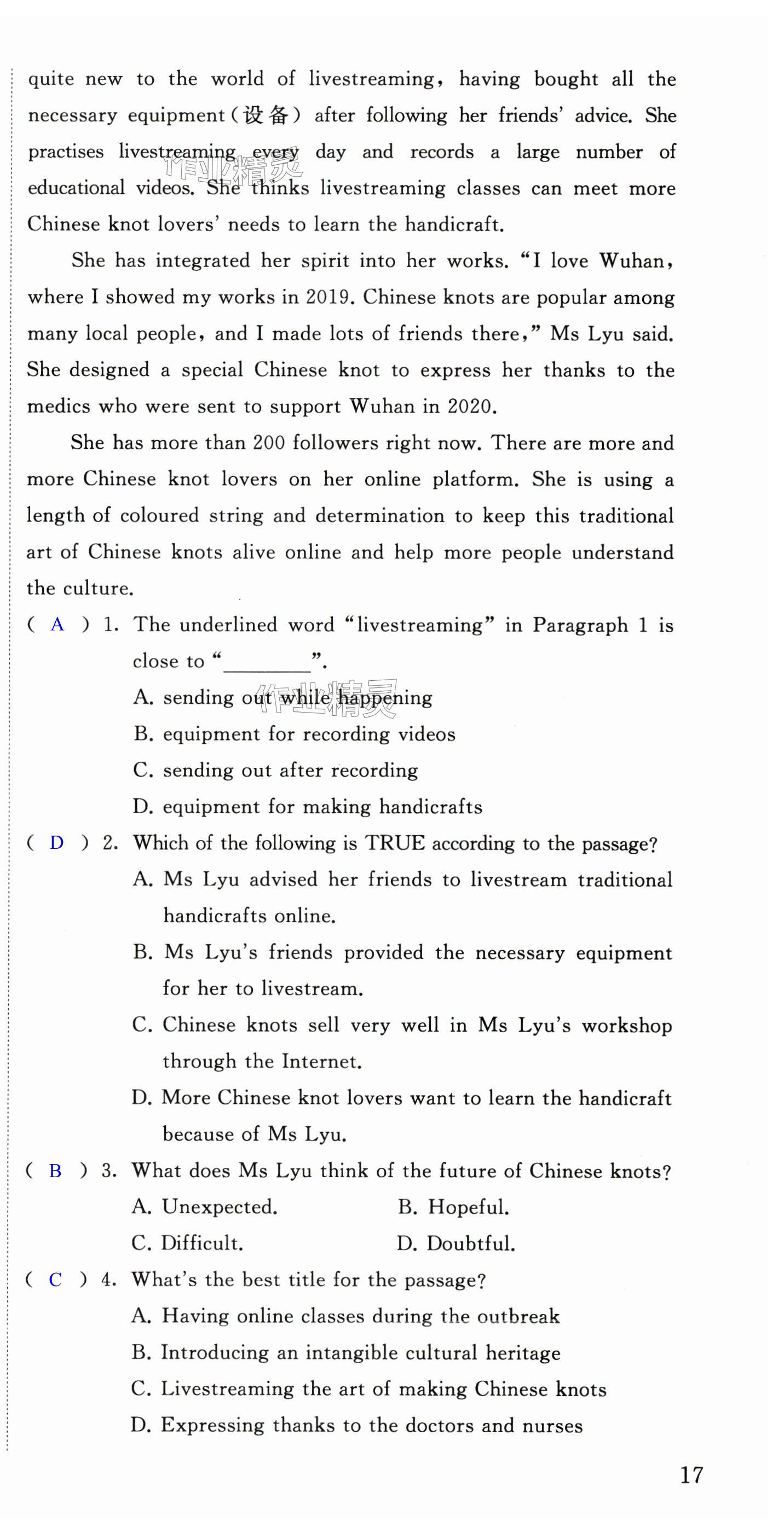 注:目前有些书本章节名称可能整理的还不是很完善,但都是按照顺序排列的,请同学们按照顺序仔细查找。练习册 2024年阳光互动绿色成长空间九年级英语上册译林版提优版 答案主要是用来给同学们做完题方便对答案用的,请勿直接抄袭。