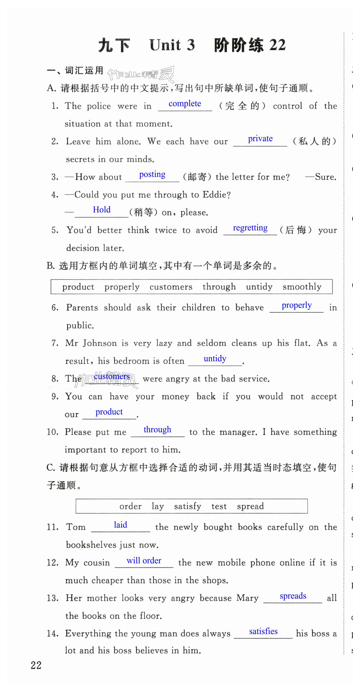 注:目前有些书本章节名称可能整理的还不是很完善,但都是按照顺序排列的,请同学们按照顺序仔细查找。练习册 2024年阳光互动绿色成长空间九年级英语上册译林版提优版 答案主要是用来给同学们做完题方便对答案用的,请勿直接抄袭。