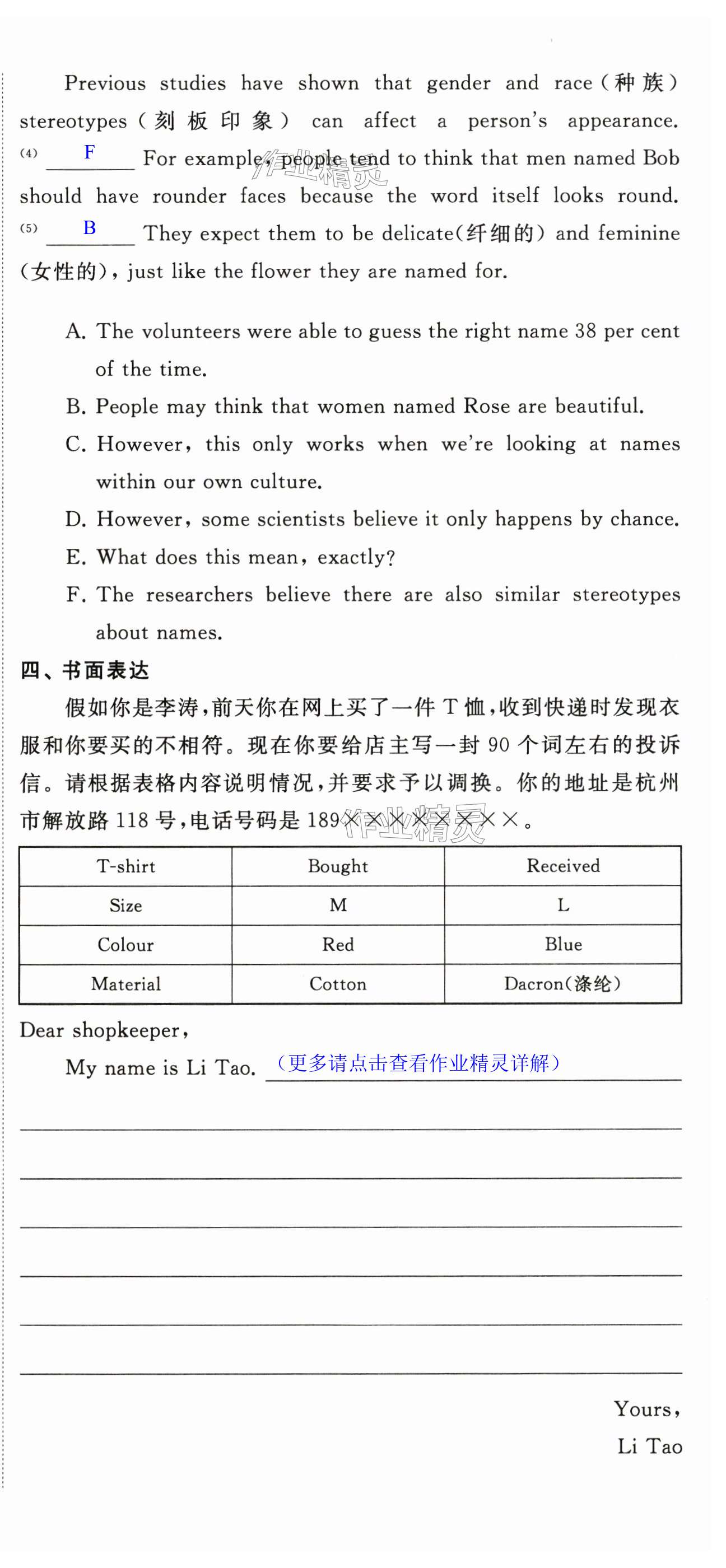 注:目前有些书本章节名称可能整理的还不是很完善,但都是按照顺序排列的,请同学们按照顺序仔细查找。练习册 2024年阳光互动绿色成长空间九年级英语上册译林版提优版 答案主要是用来给同学们做完题方便对答案用的,请勿直接抄袭。