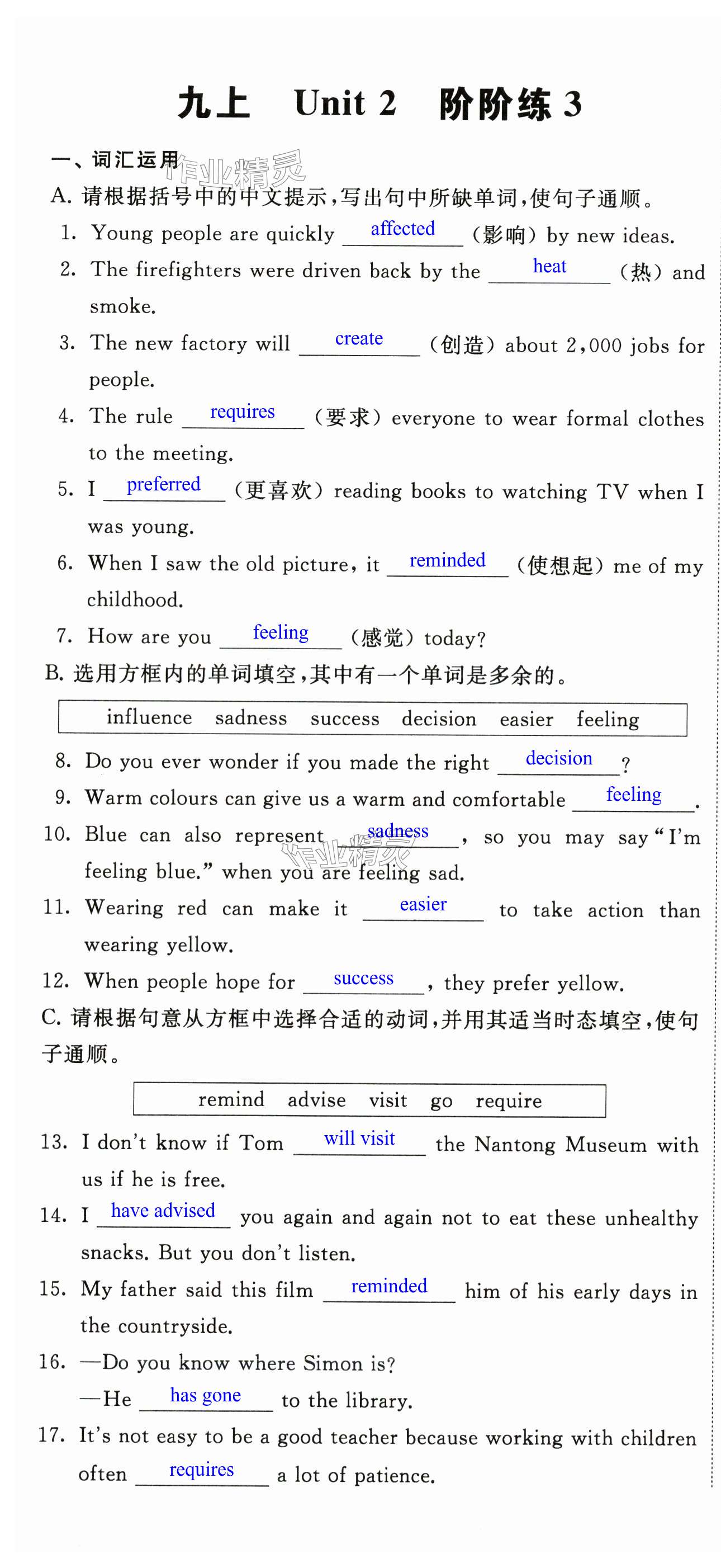 注:目前有些书本章节名称可能整理的还不是很完善,但都是按照顺序排列的,请同学们按照顺序仔细查找。练习册 2024年阳光互动绿色成长空间九年级英语上册译林版提优版 答案主要是用来给同学们做完题方便对答案用的,请勿直接抄袭。