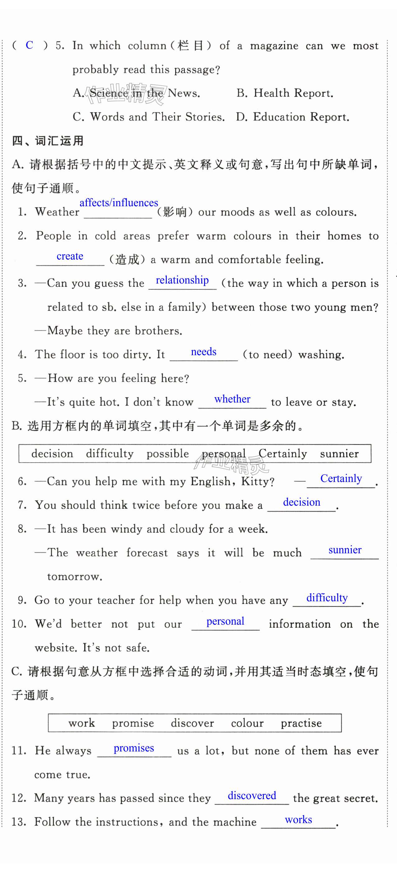 注:目前有些书本章节名称可能整理的还不是很完善,但都是按照顺序排列的,请同学们按照顺序仔细查找。练习册 2024年阳光互动绿色成长空间九年级英语上册译林版提优版 答案主要是用来给同学们做完题方便对答案用的,请勿直接抄袭。