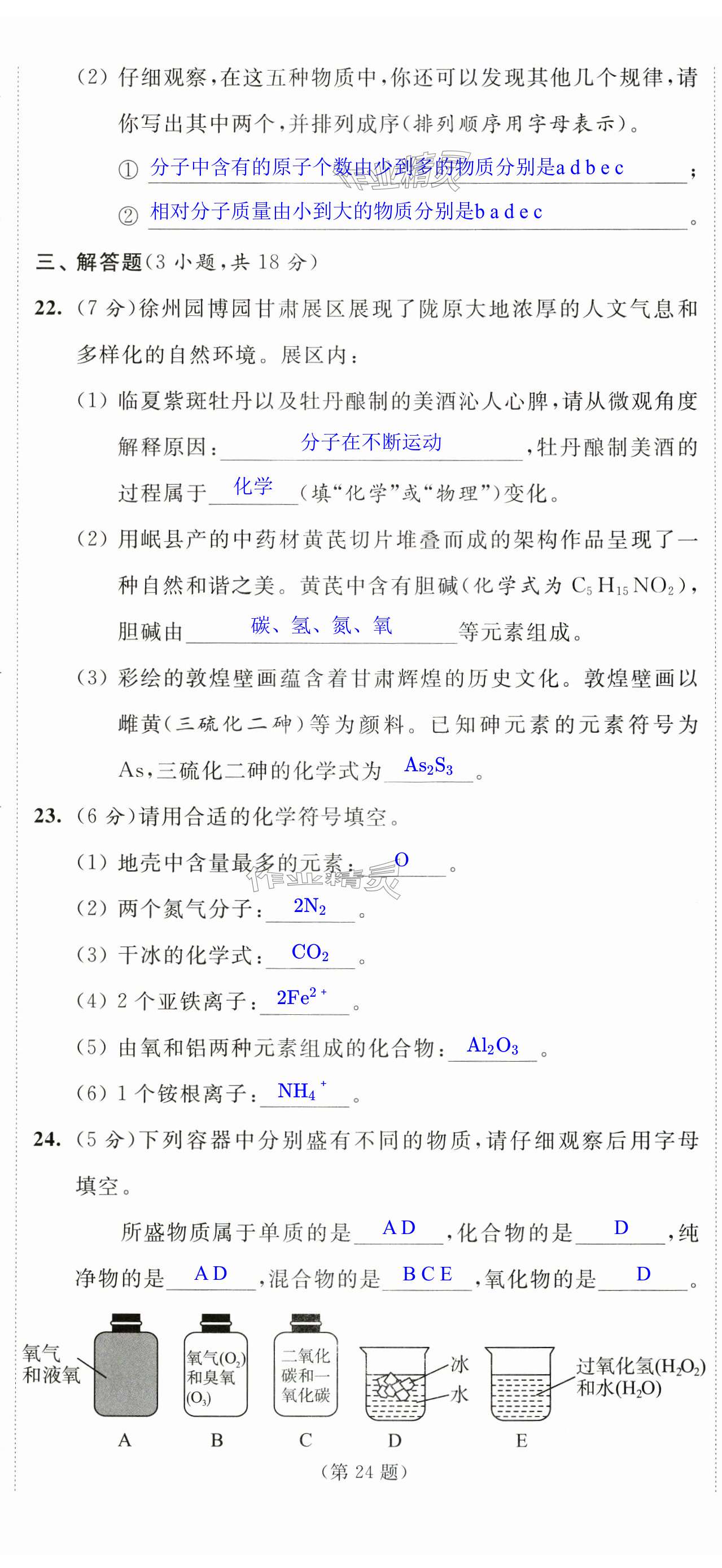 注:目前有些书本章节名称可能整理的还不是很完善,但都是按照顺序排列的,请同学们按照顺序仔细查找。练习册 2024年阳光互动绿色成长空间九年级化学上册提优版 答案主要是用来给同学们做完题方便对答案用的,请勿直接抄袭。
