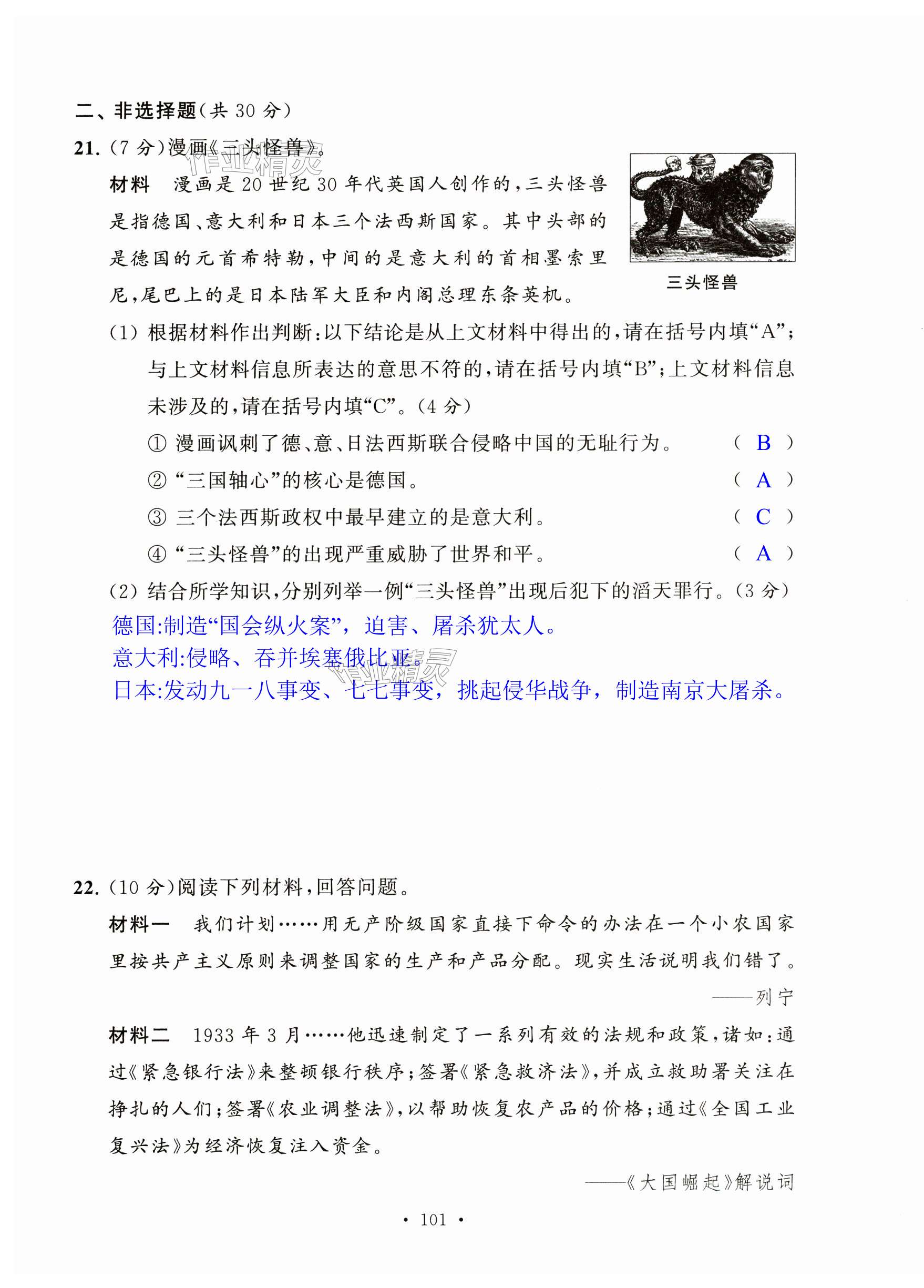 注:目前有些书本章节名称可能整理的还不是很完善,但都是按照顺序排列的,请同学们按照顺序仔细查找。练习册 2024年阳光互动绿色成长空间九年级历史上册人教版提优版 答案主要是用来给同学们做完题方便对答案用的,请勿直接抄袭。