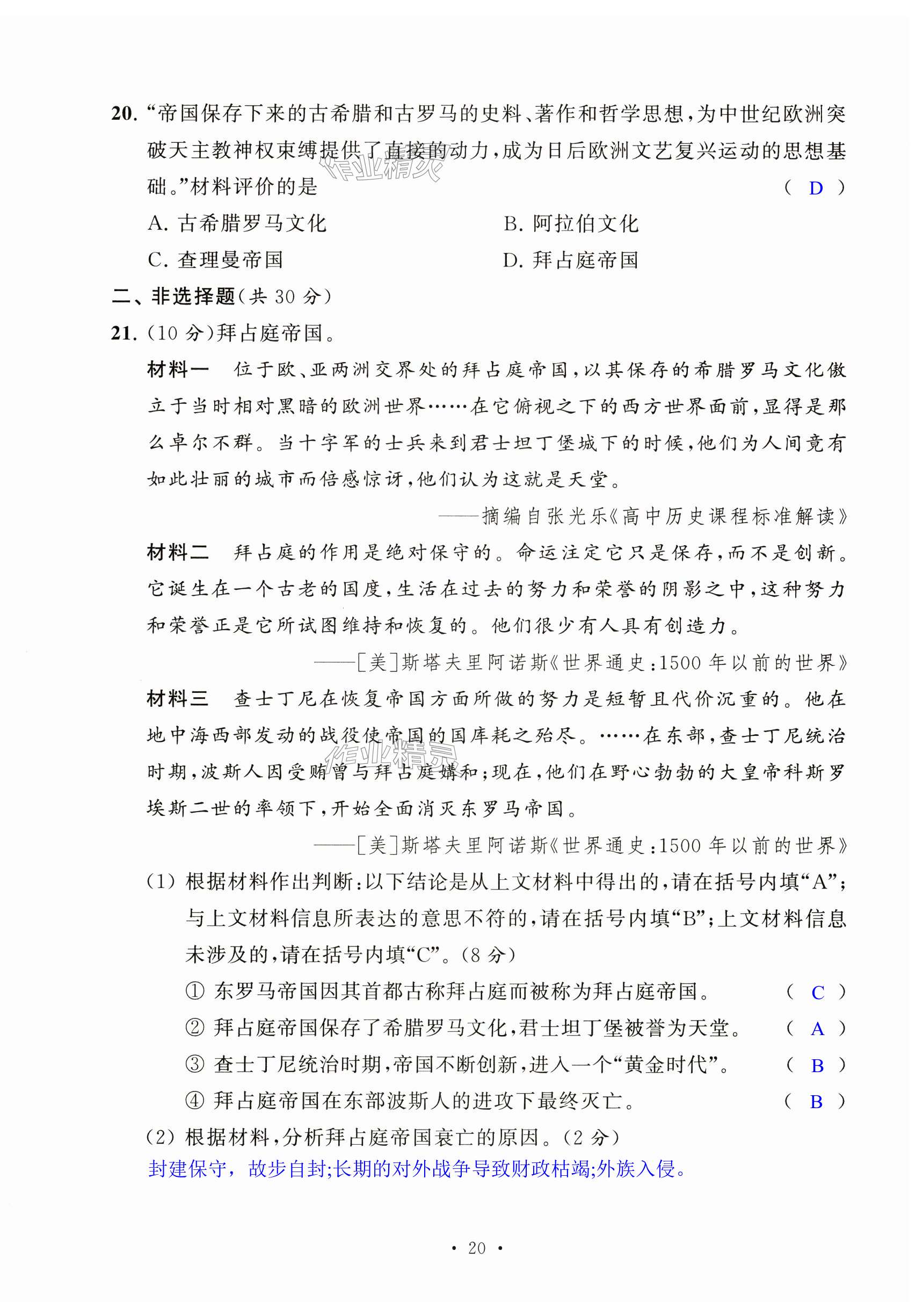 注:目前有些书本章节名称可能整理的还不是很完善,但都是按照顺序排列的,请同学们按照顺序仔细查找。练习册 2024年阳光互动绿色成长空间九年级历史上册人教版提优版 答案主要是用来给同学们做完题方便对答案用的,请勿直接抄袭。