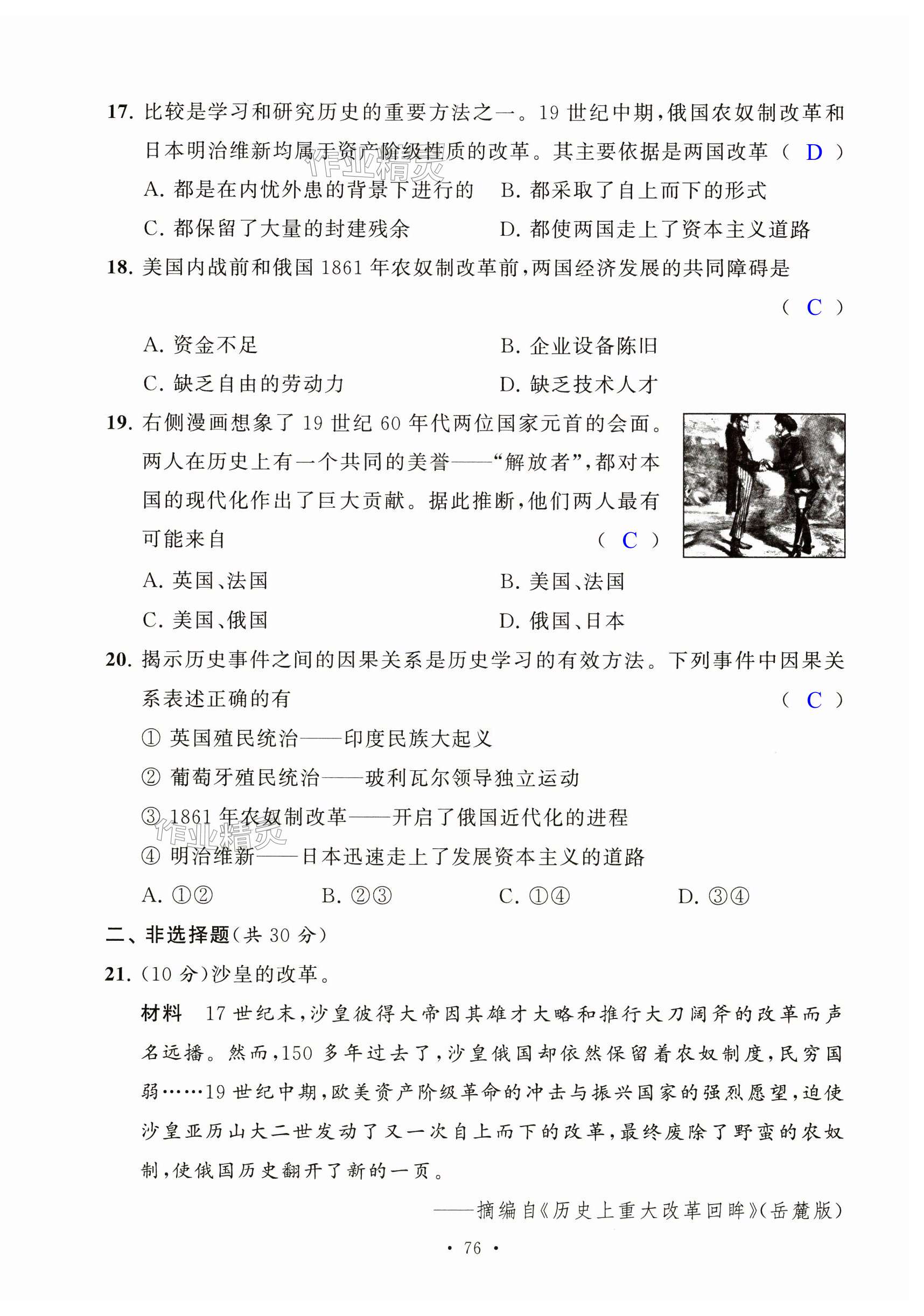 注:目前有些书本章节名称可能整理的还不是很完善,但都是按照顺序排列的,请同学们按照顺序仔细查找。练习册 2024年阳光互动绿色成长空间九年级历史上册人教版提优版 答案主要是用来给同学们做完题方便对答案用的,请勿直接抄袭。